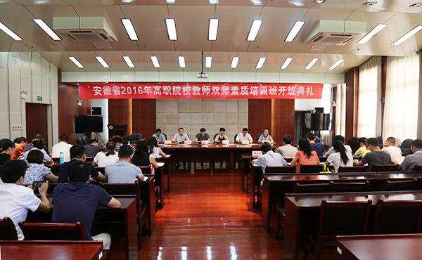 7月12日上午,我院在11楼会议室举行安徽省2016年高职院校教师双师型素质培训班开班典礼。学院党委副书记刘树俭,党委委员、副院长江洁,党委委员、组织人事处处长陈学军出席了开班典礼。全省各地的近五十名学员,学院本次培训主讲教师、班主任和工作人员参加了开班典礼。典礼由刘树俭主持。