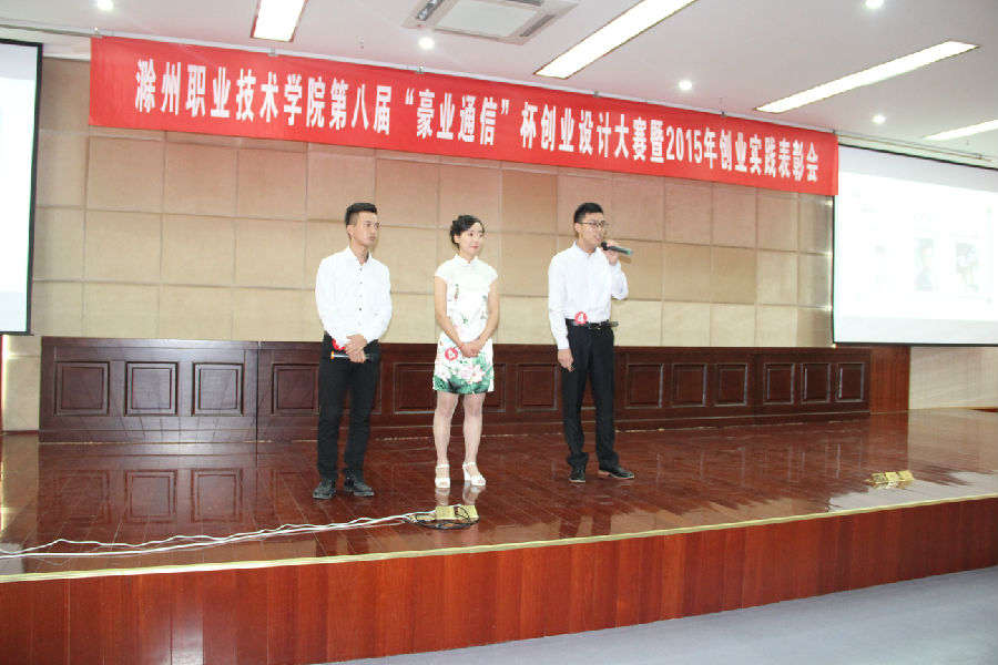 6月15日下午,以“激发创业热情 拓展职业空间”为主题的第八届“豪业通信”杯创业设计大赛在综合楼五楼报告厅热烈举行。本次大赛由安徽豪业通信技术有限公司独家冠名,学院招生就业处主办、各系部、院团委、学院综合素养与职业发展教研室、省创新创业教育工作室共同协办。