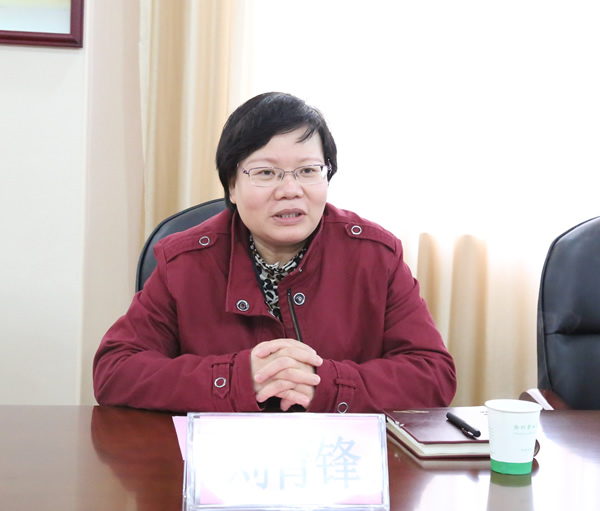 刘育锋介绍了此次调研的目的,并与相关系部处室负责人、企业代表、学生及家长代表深入沟通交流,详细了解了学院在校生规模情况,学生升学情况,教师情况,专业设置、课程和教材情况,校企合作情况,学生实习实训管理情况以及职业教育管理体制情况。