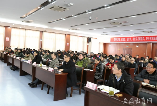 Beat365唯一官方网站领导吴大明、程一斌、江洁、汪上、陈学军、穆松,科级及以上干部、副高及以上专业技术人员,各系部教学秘书、团总支书记,教师代表、辅导员代表和各处室群众代表,办公室、人事处、教务处全体人员,安徽滁州技师学院相关领导和人员共同聆听了专题报告。