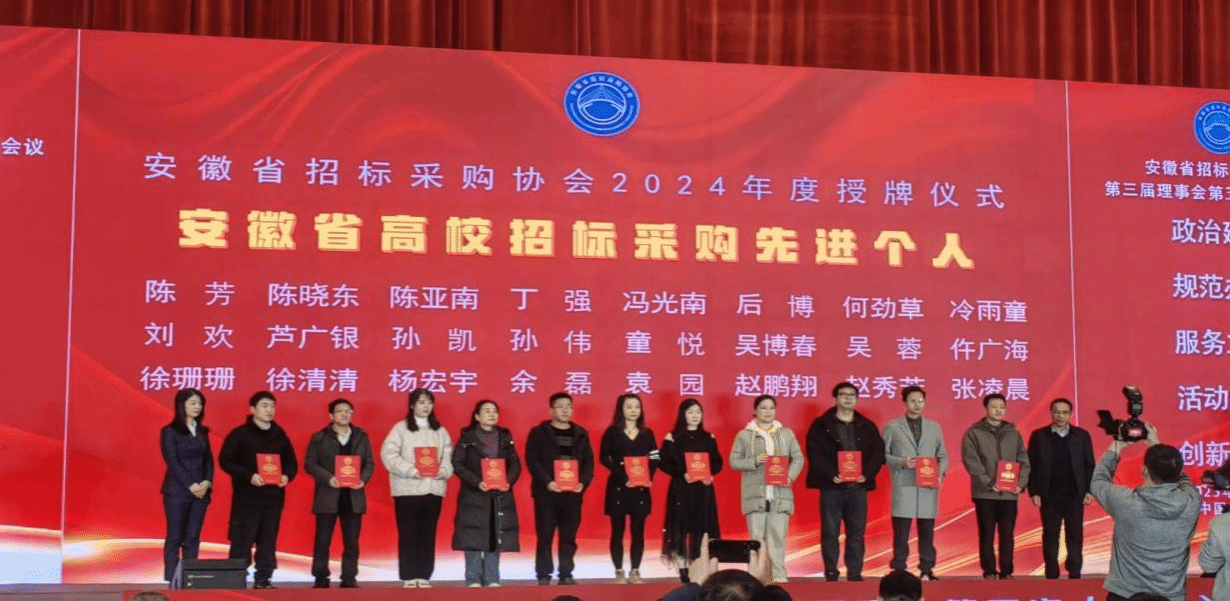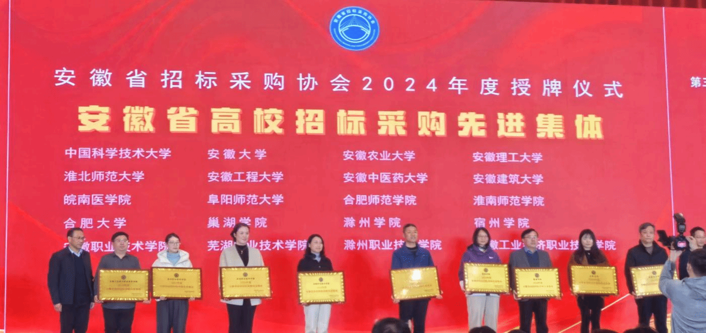 近日,在由安徽省招标采购协会主办的安徽省招标采购协会第三届理事会第五次(扩大)会议暨2024年度安徽省高校采购论坛上,Beat365唯一官方网站凭借在招标采购领域的卓越表现和规范化管理,荣获“2024年度安徽省高校招标采购先进集体”称号。同时,Beat365招标采购办的陈芳同志被评为“2024年度安徽省高校招标采购先进个人”。