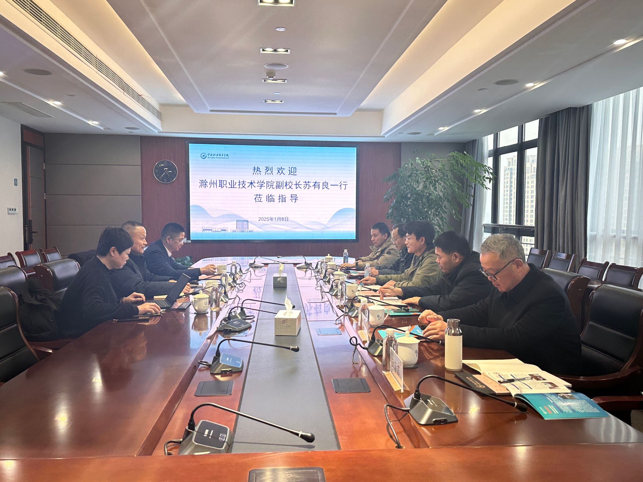 苏有良一行调研了绿色化工专业群、人工智能专业群、高端装备专业群、数字科技园、跨境电商实训基地和中国职业技术教育援外培训基地等,并与相关专业教师进行了深入交流。随后,双方就专业群建设、产教融合发展、公共实训基地建设等进行座谈。