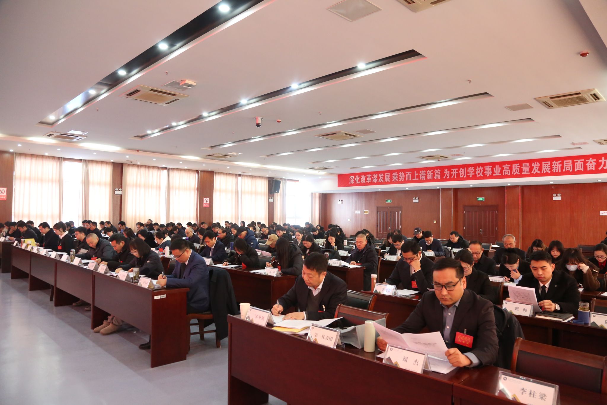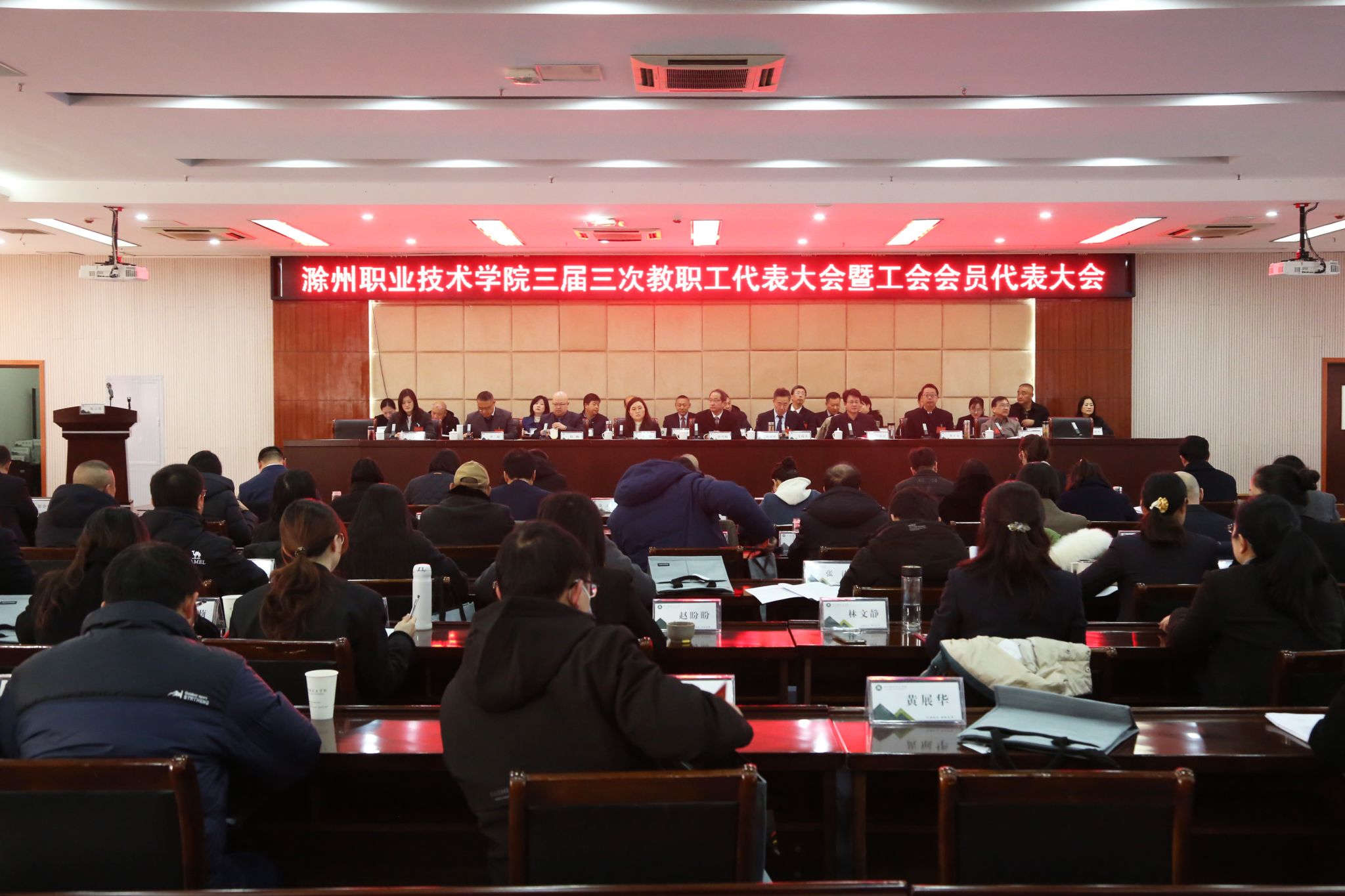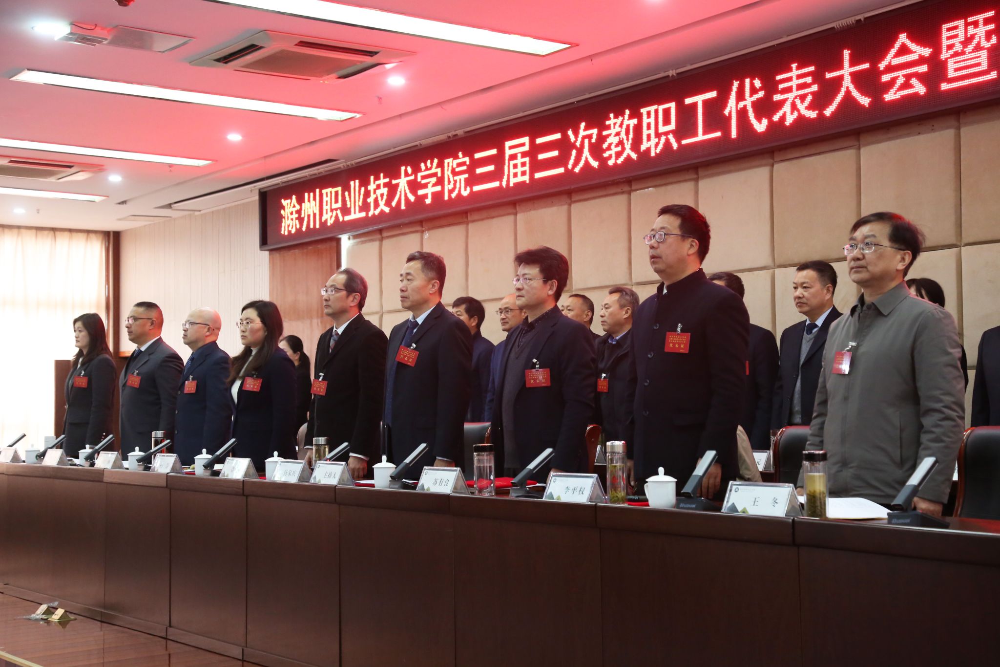 Beat365唯一官方网站三届三次教职工代表大会暨工会会员代表大会在庄严的国歌声中胜利闭幕。