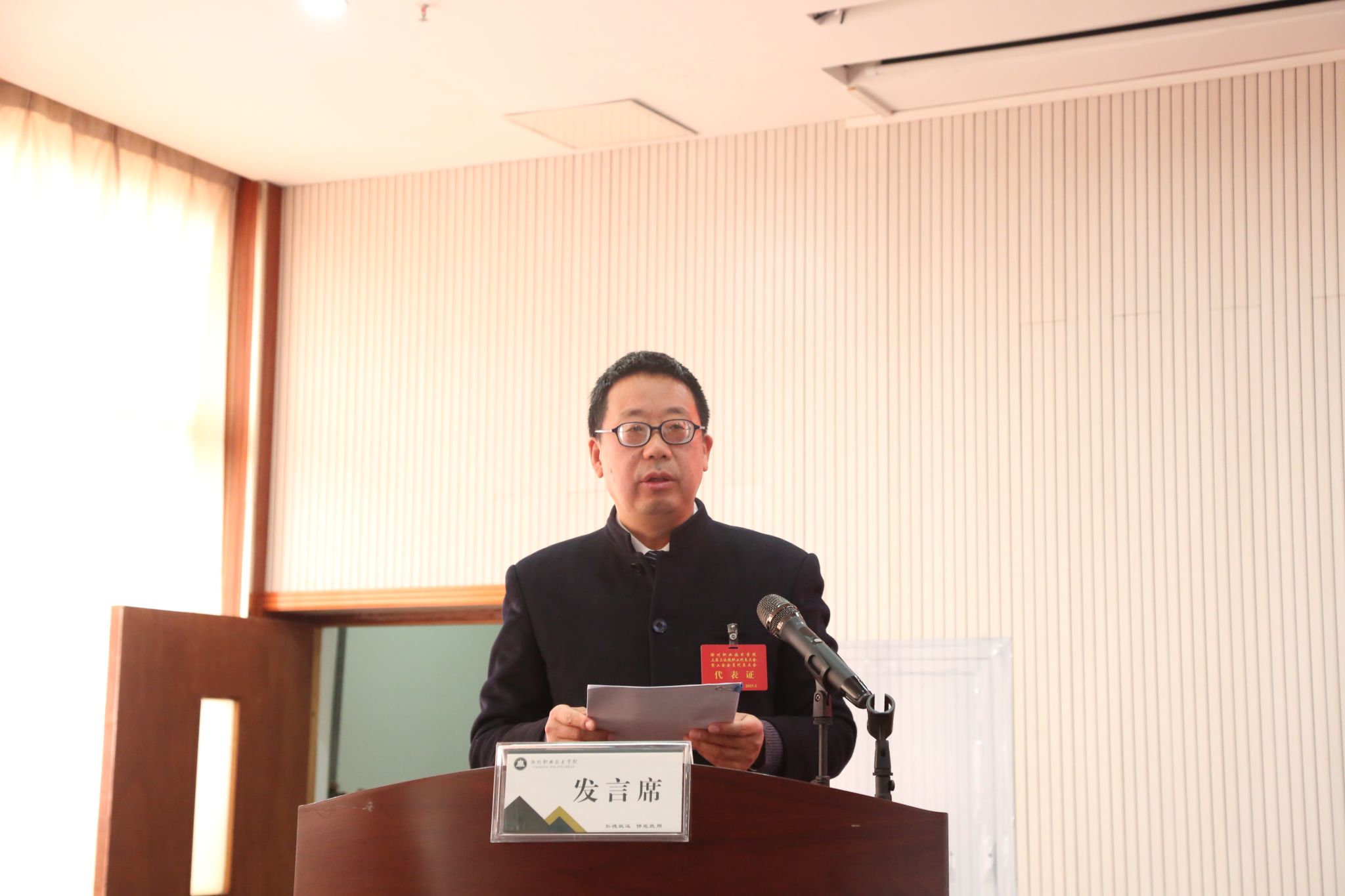 2月26日下午,第二次全体会议于综合楼五楼报告厅召开 ,许雪峰讲话。