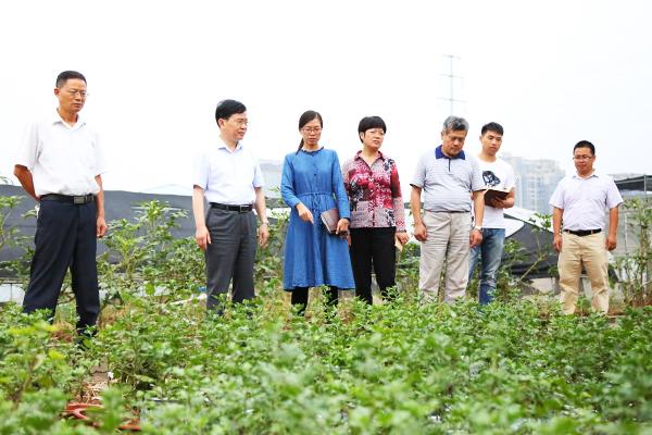 为了促进学院滁菊园艺大师工作室的建设,2017年9月20日下午,学院党委副书记、院长李柱梁,院党委委员、副院长江洁,院党委委员、组织人事处处长陈学军等人在食品与环境工程系副主任梁建军及相关老师的带领下,来到园林园艺校内生产性实训基地检查滁菊园艺大师工作室的工作进展。