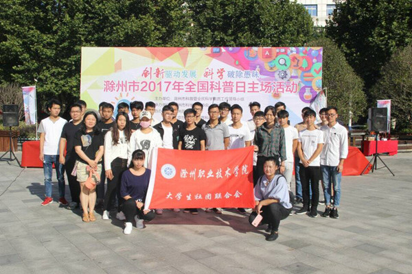 2017年9月16日上午,滁州市2017年全国科普日主场活动在苏宁广场正式启动。滁州市政府、市科协及各高校领导出席了开幕式活动,我院党委委员、副院长吴大明同志及科研处、团委负责老师和50名科技及专业类社团代表参加了此次开幕式。