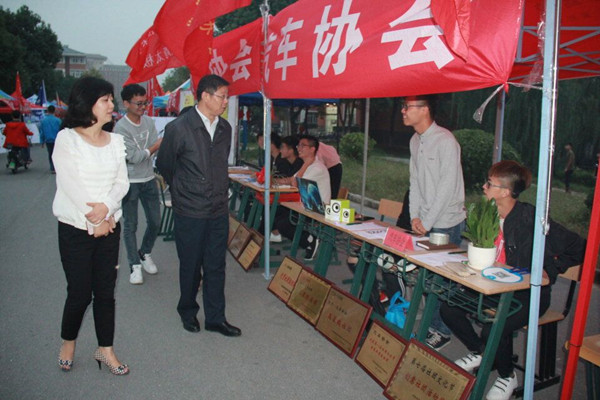 吴大明细心的走过每一个社团的摊点,逐一询问各社团招新情况,并亲切地与各社团同学进行了交流与沟通。吴大明充分肯定了学生社团在校院园文化建设丰富大学生第二课堂、促进学生成长成才方面发挥的积极作用。同时希望,学生社团注重活动开展质量,注重会员权益的保护,注重社团文化的传承与创新,注重可持续发展,不断凝聚会员,努力促进会员成才。他强调,学生要以学习为本,学生社团活动的第一课堂有益补充,不得占用上课时间。他要求,院团委高度重视学生社团工作,社团指导老师把握学生社团发展方向,注意开展活动的安全保护,为学生社团开展活动提供必要的支持和帮助。