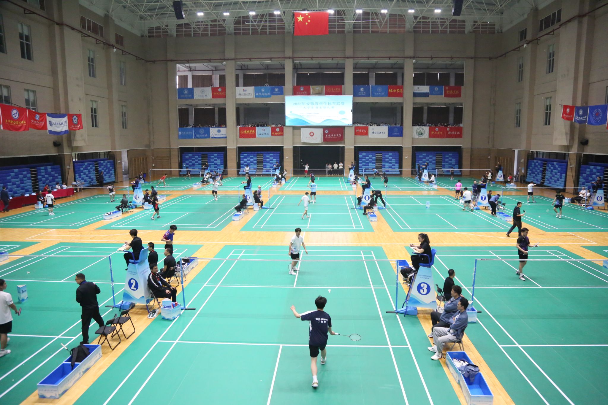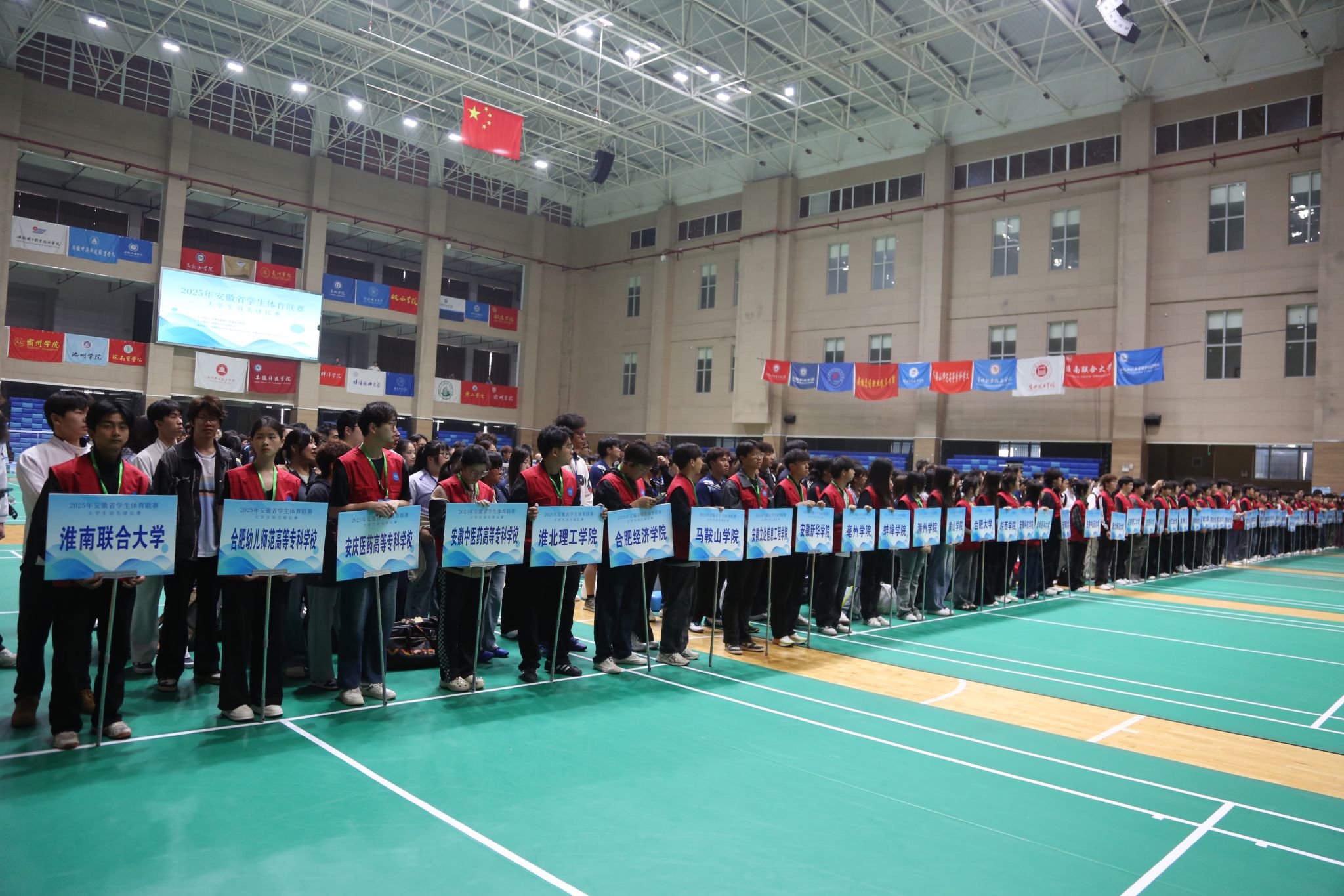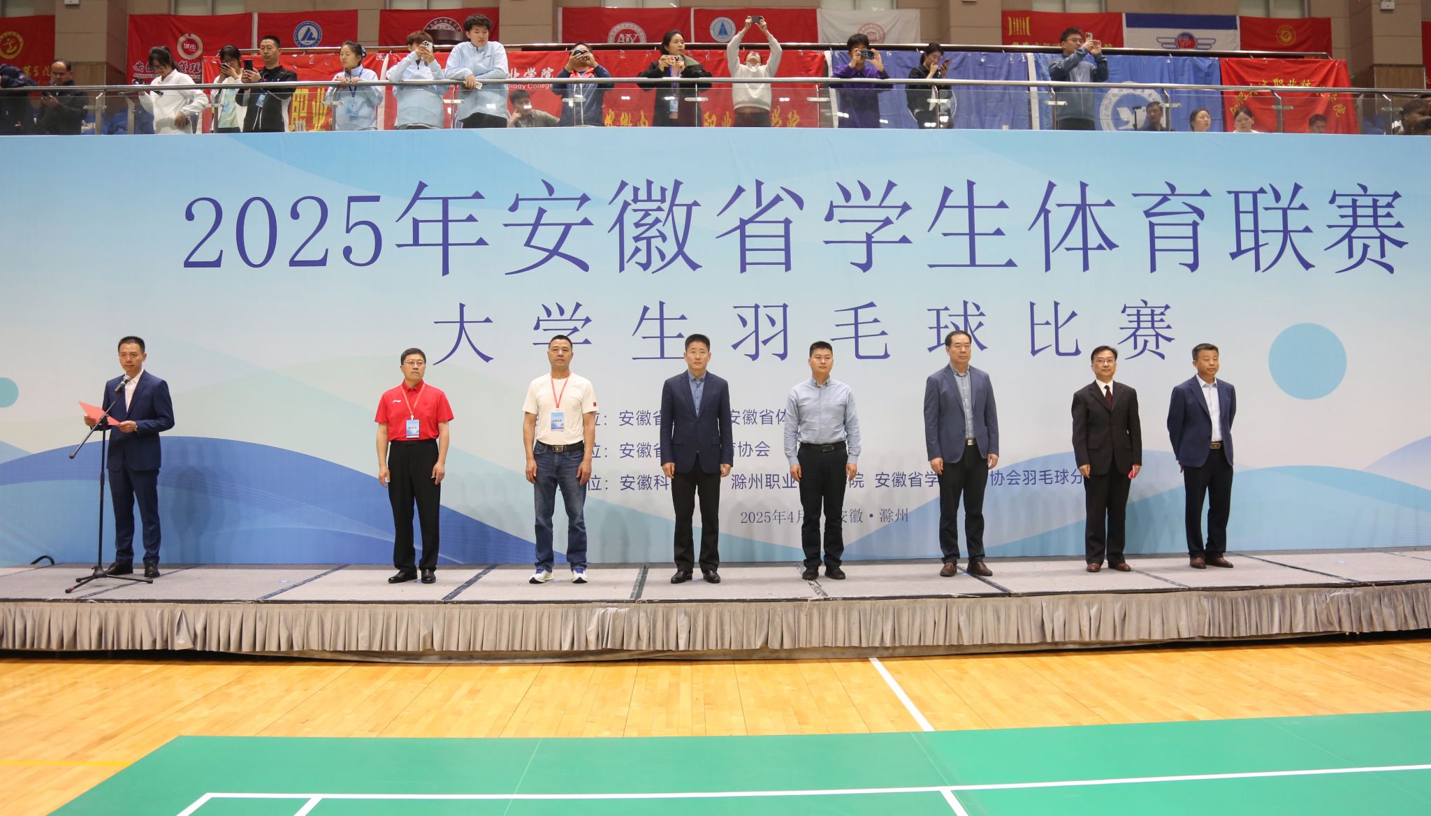 4月23日上午8时,2025年安徽省学生体育联赛大学生羽毛球比赛开赛仪式在Beat365体育馆隆重举行。安徽省教育厅体卫艺处三级主任科员陆涛,安徽省学校体育协会副理事长、秘书长马纯,滁州市教育体育局副局长李志,Beat365唯一官方网站党委委员、宣传统战部部长王冬,比赛监督陈有忠教授,比赛技术代表王淮勘教授,比赛裁判长何俊如出席,各高校代表队领队、教练员、运动员参加仪式。开幕式由安徽科技学院滁州校区党工委副书记施培智主持。