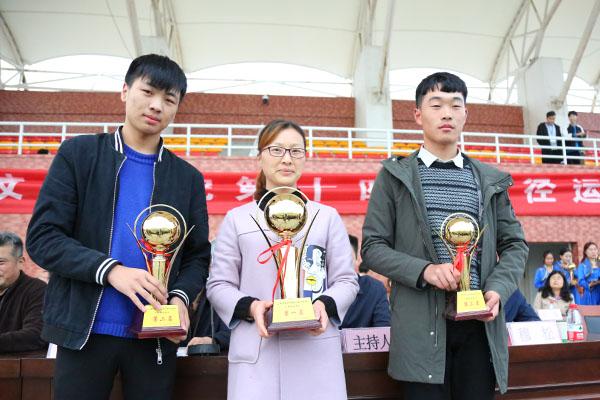 全力拼杀两天的体育健将们激情不减、斗志未褪,仍然神采飞扬、英姿飒爽地列队入场。本届运动会总裁判长学院体育部程茂勇老师首先宣布了本届运动会各项比赛成绩。学院领导为荣获团体奖项的集体颁发了奖杯。