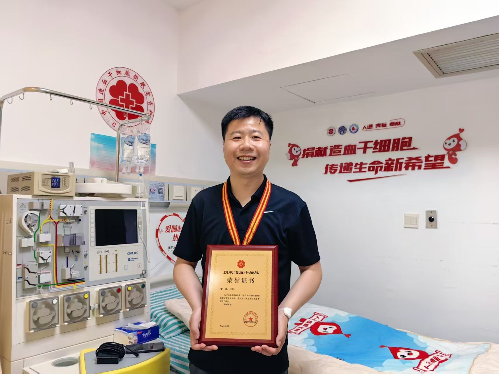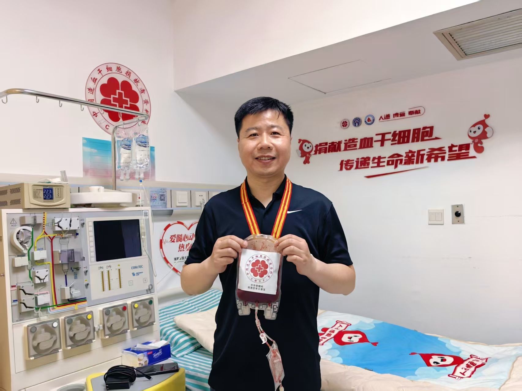 时间是检验承诺的试金石。2019年,董波老师志愿加入中华骨髓库,许下了挽救生命的郑重承诺。2023年,他曾与一名患者配型成功,并完成高分辨检测和体检,一切准备就绪,却因患者病情变化而未能如愿。但他从未放弃,“只要患者需要,我随时待命!”的信念一直深植心中。