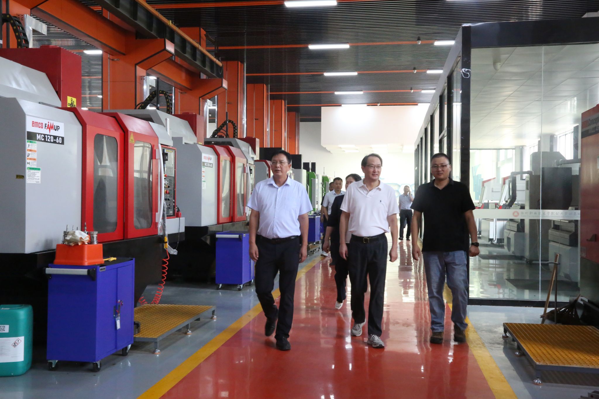 刘江华一行现场查看了学校两校区连接部,深入到智能制造创新实践实训基地、专精特新产业学院考察调研,详细了解学校开学准备、校企合作、产教融合和服务地方经济发展有关情况。