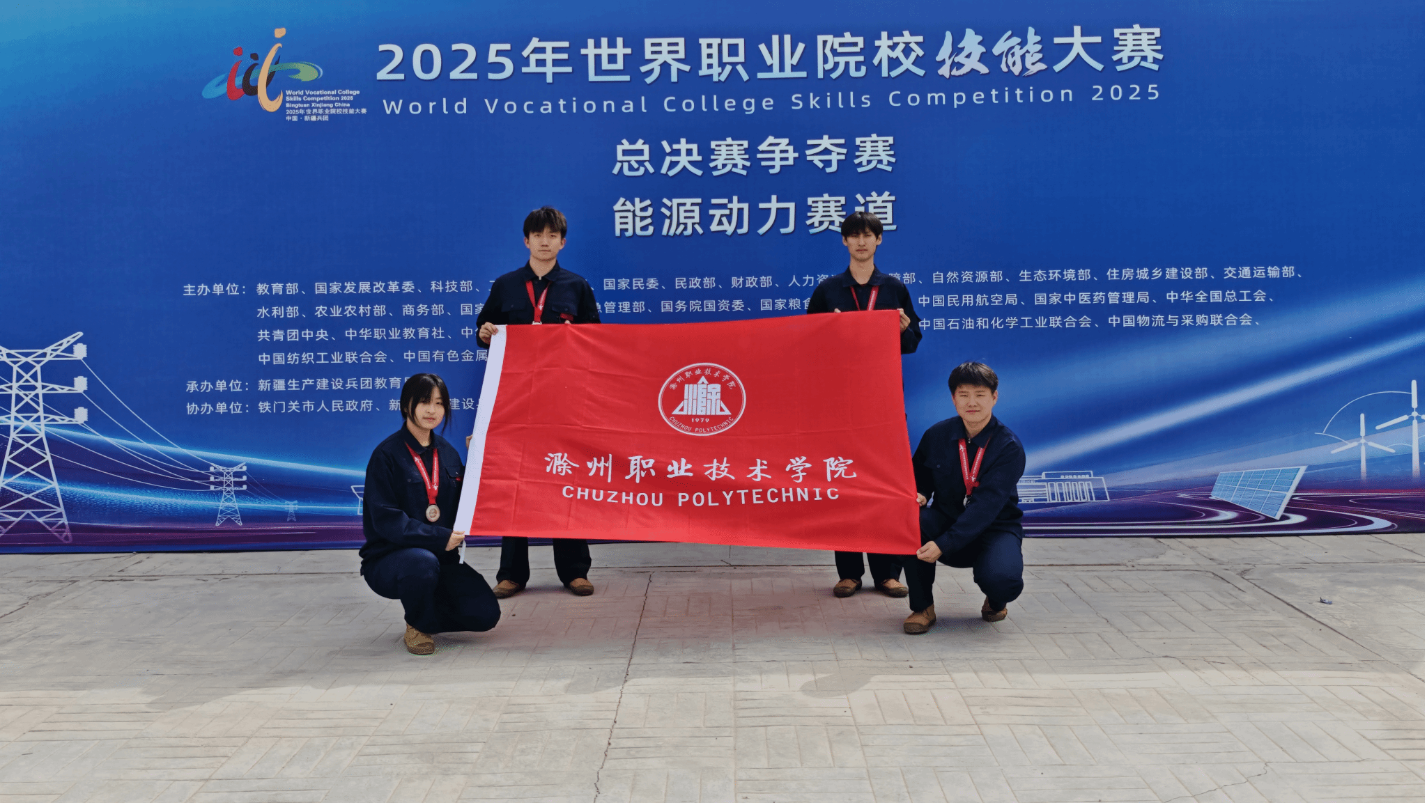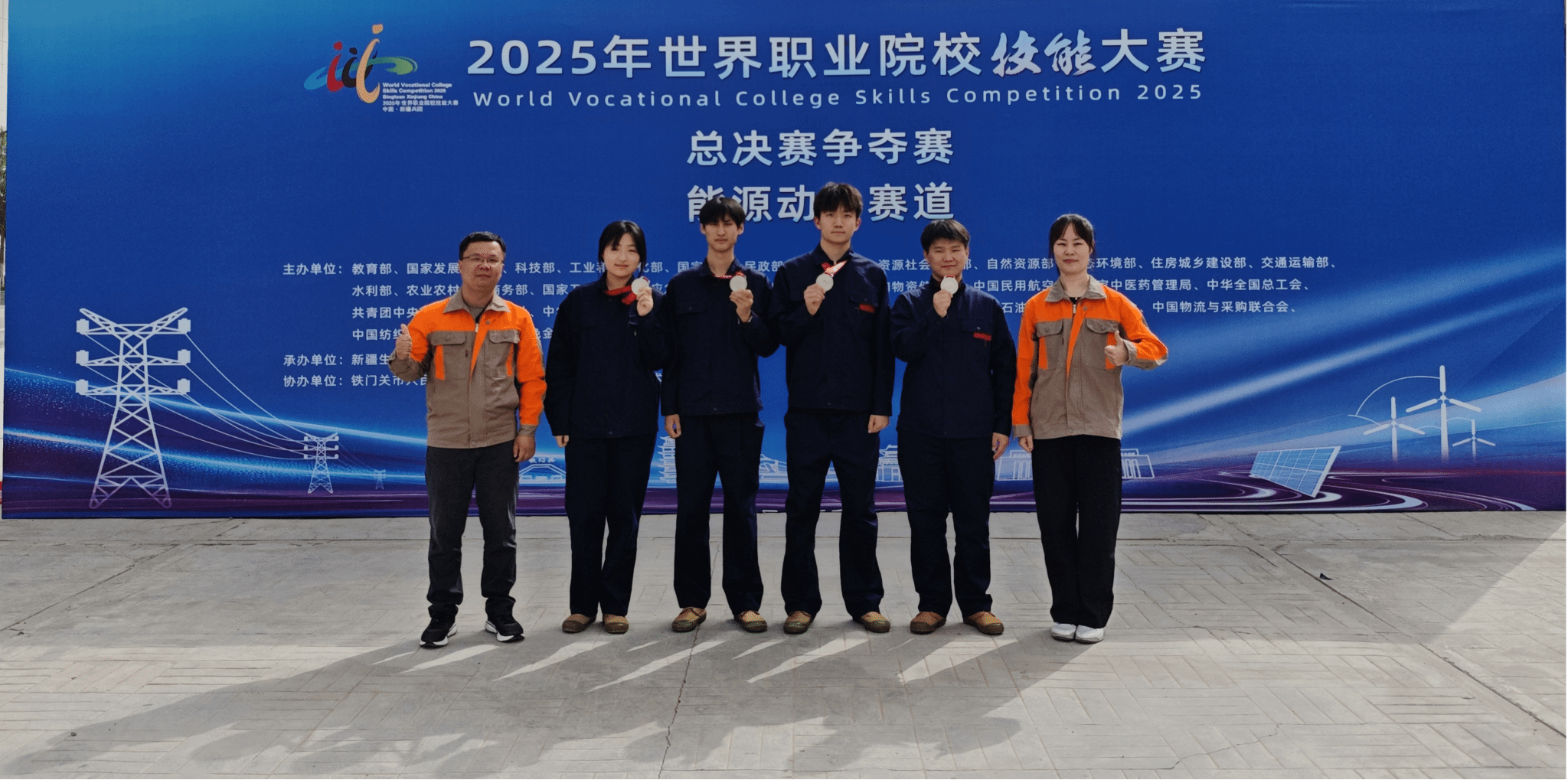 9月4日至9日,2025年世界职业院校技能大赛总决赛能源动力赛道(高职组)在新疆生产建设兵团兴新职业技术学院举办。全国31个省(直辖市)的102支代表队、400余名选手,历经2天激烈比拼。最终,Beat365电气工程学院袁增政、程高法、钱路、朱晓茜四名学生(由朱山川、陶璐老师指导),凭借扎实专业功底、精湛操作技艺与创新解决方案,斩获银奖,为校争光。