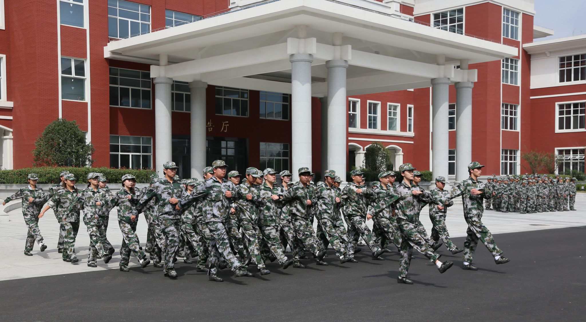 训练场上,6000余名新生以连队为单位,在教官的指令下开展立正稍息、齐步走等基础队列训练,动作整齐划一、精神饱满昂扬。部分连队还利用训练间隙组织军歌学唱、拉歌互动等活动,嘹亮的歌声与整齐的口号声交织,展现出新生们积极融入集体、勇于接受磨砺的青春态度。带训辅导员全程坚守在训练一线,时时留心新生训练动态,为军训工作有序推进提供有力支撑。