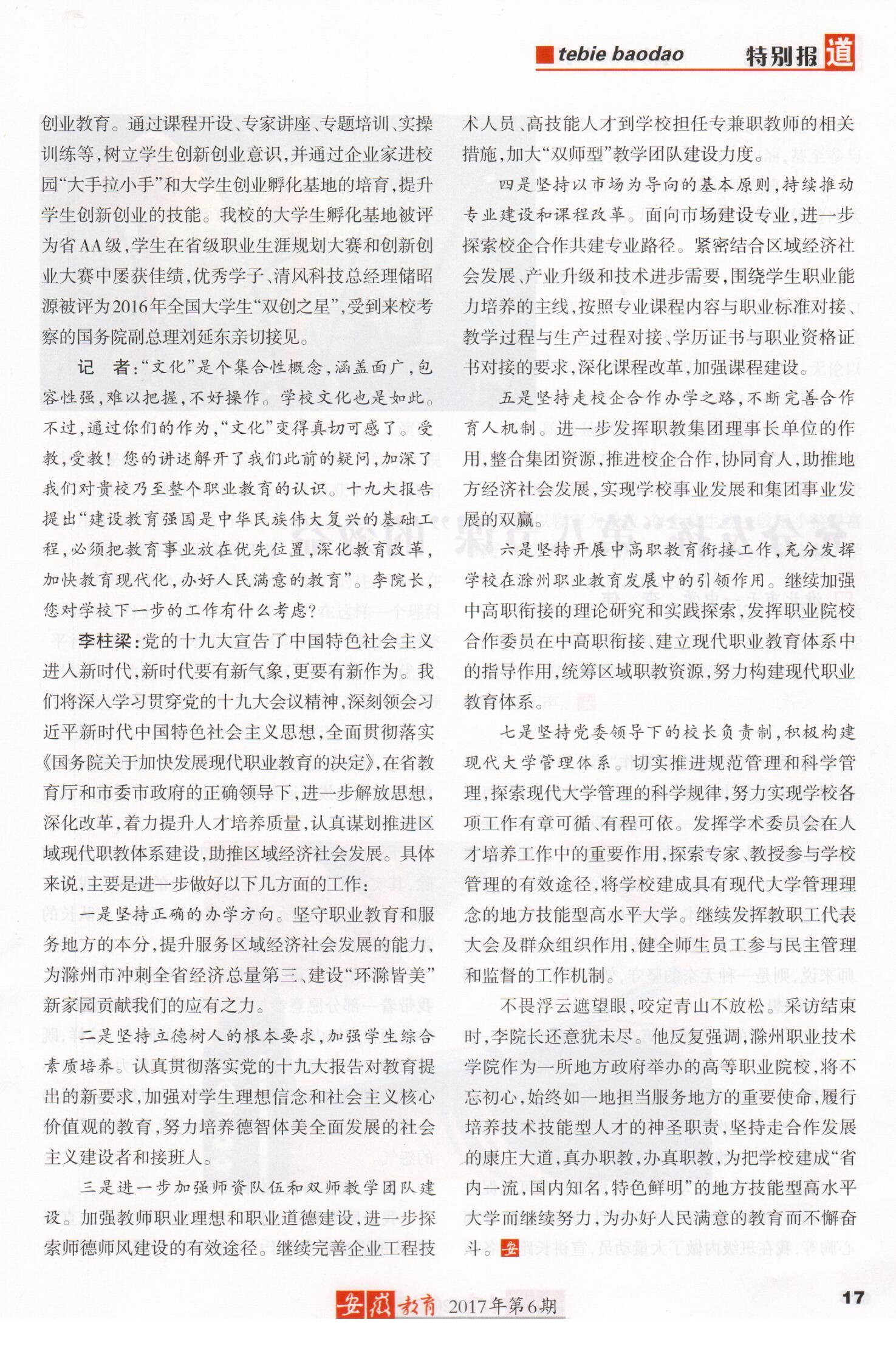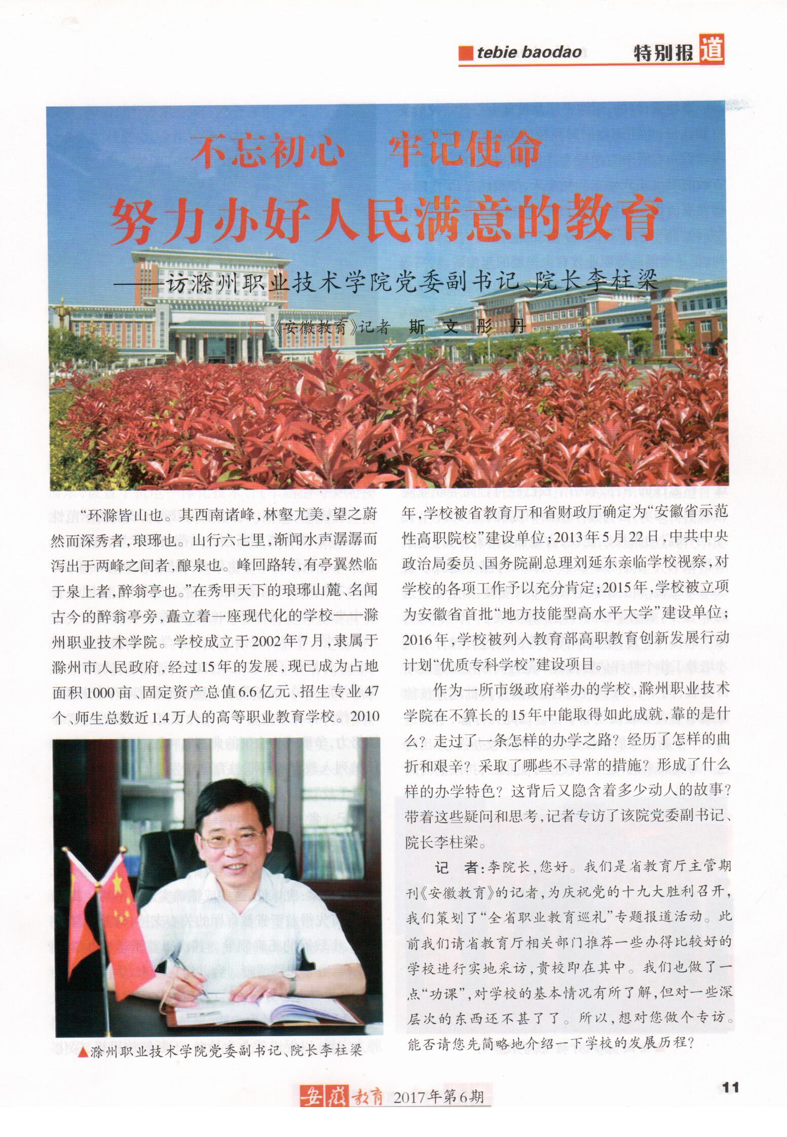 《安徽教育》杂志人物专访李柱梁教授:不忘初心 牢记使命 办好人民满意的教育