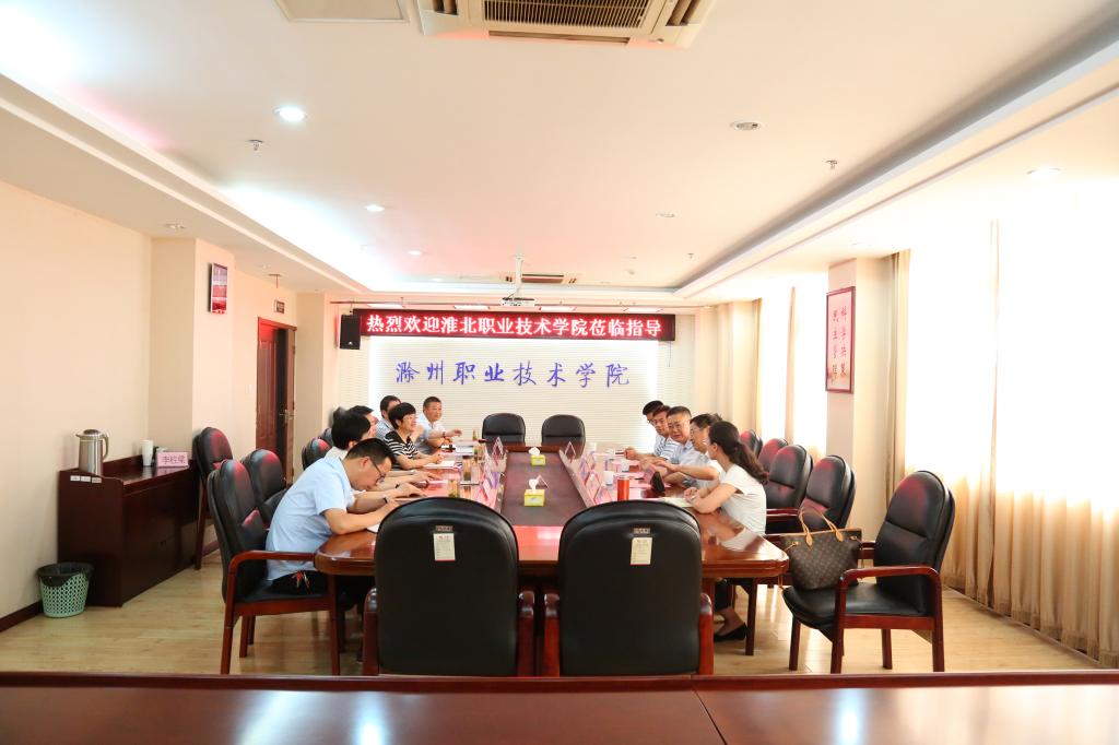 6月5日下午,淮北职业技术学院党委委员、副院长姬兴华一行五人来我院考察交流。院党委委员、副院长江洁,党委委员、副院长汪上热情接待了姬兴华一行。