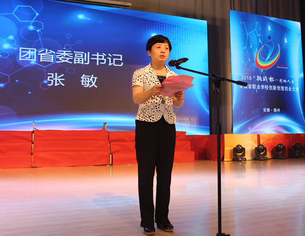 闭幕式上,团省委副书记张敏发表讲话。张敏指出,省委、省政府历来重视和支持青年创新创效创业工作。2018年,我省首次举办职业学校创新创效创业省级大赛,通过搭建赛事平台,切实践行“中国制造2025”、创新驱动等国家和全省发展战略,为我省培养更多的高素质的劳动者和技术技能人才。张敏希望,通过本项大赛,更好地促进职业学校学生的成长发展,更好地促进“工匠精神”在校园、学生以及社会上的广泛传播弘扬,更好地促进创新创效创业成果的涌现和转化,切实服务全省经济社会发展。张敏强调,劳动光荣、技能宝贵、创造伟大,在这个“人人皆可成才”的新时代,同学们要牢记习近平总书记对青年提出的“爱国、励志、求真、力行”的谆谆教诲,牢固树立和自觉践行敬业守信、精益求精的职业精神,树立远大职业理想,学好过硬职业技能,为早日成为一名“大国工匠”奋斗不息,在创新创效创业的道路上不断挑战自我、成就彩虹人生,共同为实现中华民族伟大复兴的中国梦贡献青春、智慧和力量。