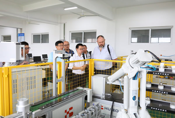 会前,在穆松等领导的陪同下,达西·凯莱赫一行实地参观了学校大学生孵化基地、校内实训工厂、3D打印室、工业机器人实训室和校史馆等场所。
