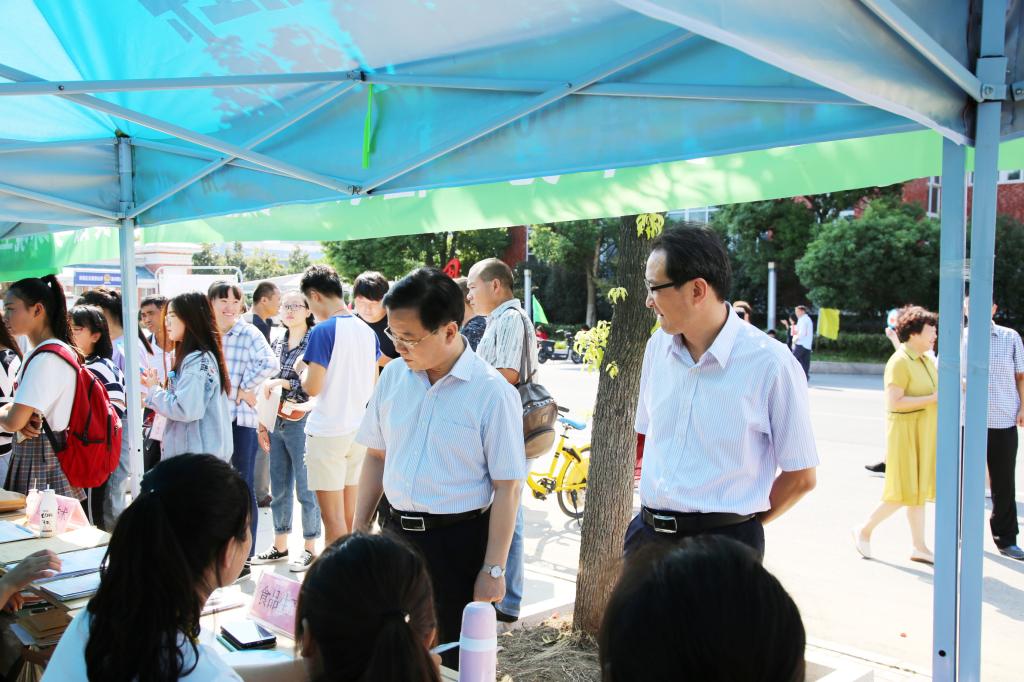 上午9时30,校党委书记李柱梁,校党委副书记、校长许雪峰,校党委副书记刘树俭,校党委委员吴大明,校党委委员、副校长江洁,校党委委员、校长助理、招生就业处处长穆松等一行先后来到了迎新接待点,慰问现场老师和志愿者,了解迎新各项工作进展情况。走访过程中校领导还与新生及家长进行亲切交流,对远道而来的家长表示慰问,对新同学的到来表示热烈欢迎,送上最真挚的关怀。
