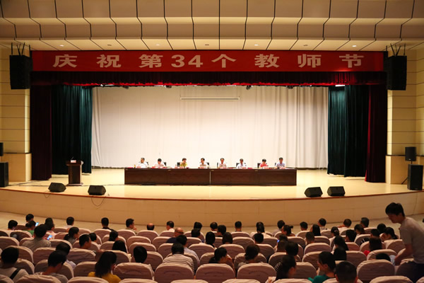 9月10日下午,学校举行教师节庆祝表彰大会,全校教职工齐聚大礼堂,喜迎第34个教师节。校领导李柱梁、许雪峰、刘树俭、吴大明、杨华龙、江洁、陈学军、穆松出席会议。会议由学校党委副书记刘树俭主持。