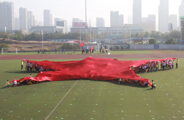 开幕式上,同学们精心准备了精彩纷呈的文艺节目。大型广播体操表演整齐划一,充满着青春蓬勃的活力,为本届校运会增添了风采;柔韧优美的健美操、热情似火的啦啦操等表演引起现场观众的阵阵欢呼。