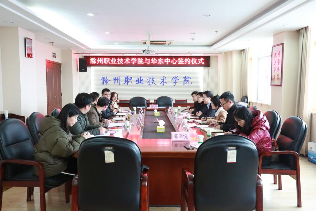 3月1日上午,学校与中国高校科技成果转化(华东)中心(简称“华东中心”)框架合作签约仪式在综合楼804会议室举行。校党委委员、副校长汪上、滁州市经开区管委会副主任庄全超、华东中心主任卢晓晨、职研所所长卜锡滨以及华东中心主要部门负责人和工作人员共同出席了座谈会与签约仪式。仪式由汪上主持。