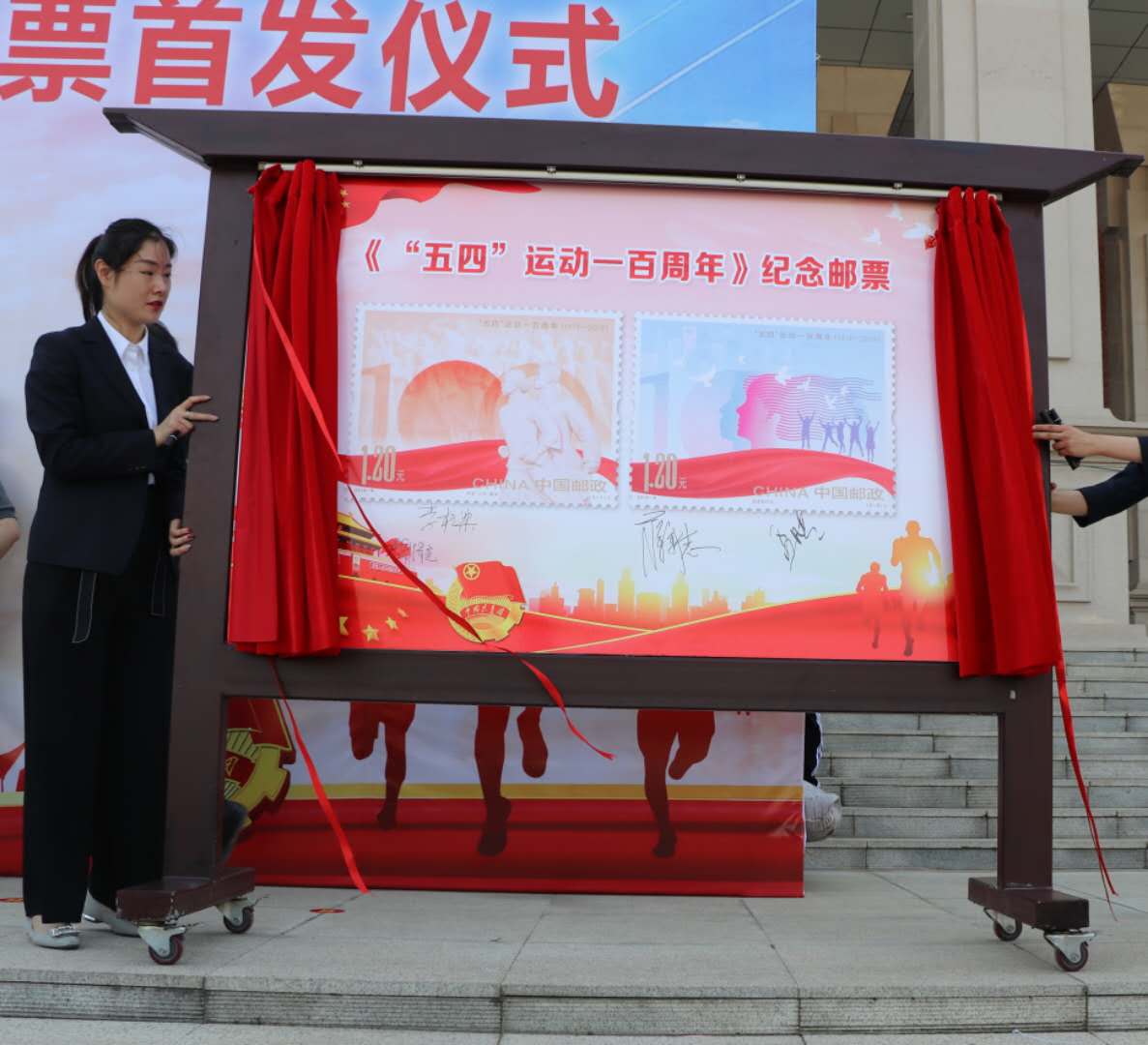 江华宣读了《“五四”运动一百周年》纪念邮票发行公告。