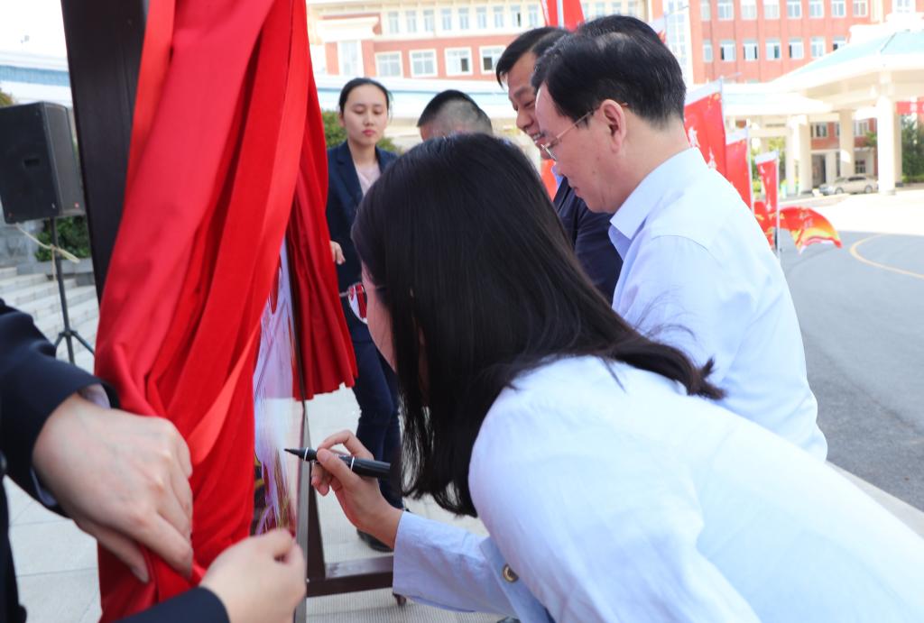 仪式上,李柱梁、蒋新志、魏倩霓、孟凡杰共同为纪念邮票揭幕并签名。