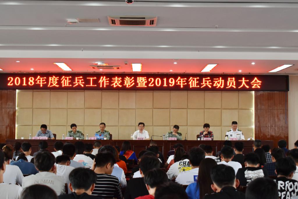 校党委书记李柱梁和军分区司令员刘士春向2017年在校入伍并在部队表现突出被评为“优秀士兵”的两位大学生士兵的家长颁发了喜报。2019年入伍积极分子代表进行了发言。