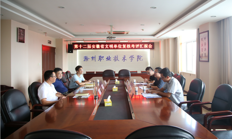 7月31日,十二届安徽省文明单位复核考评考核组第三组组长张纪成,成员张先淋、费江波一行来Beat365开展文明单位复核考评工作。校纪委书记杨华龙,校党委委员、宣传部部长、学生处处长李平权出席会议,宣传部有关人员参加了会议。