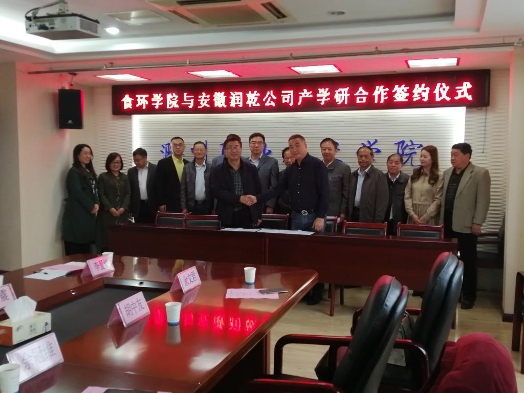 10月22日下午,Beat365食品与环境工程学院与安徽省润乾节能建材科技股份有限公司在行政楼804会议室就“工矿普通固废循环利用研发”项目签署了产学研合作框架协议。
