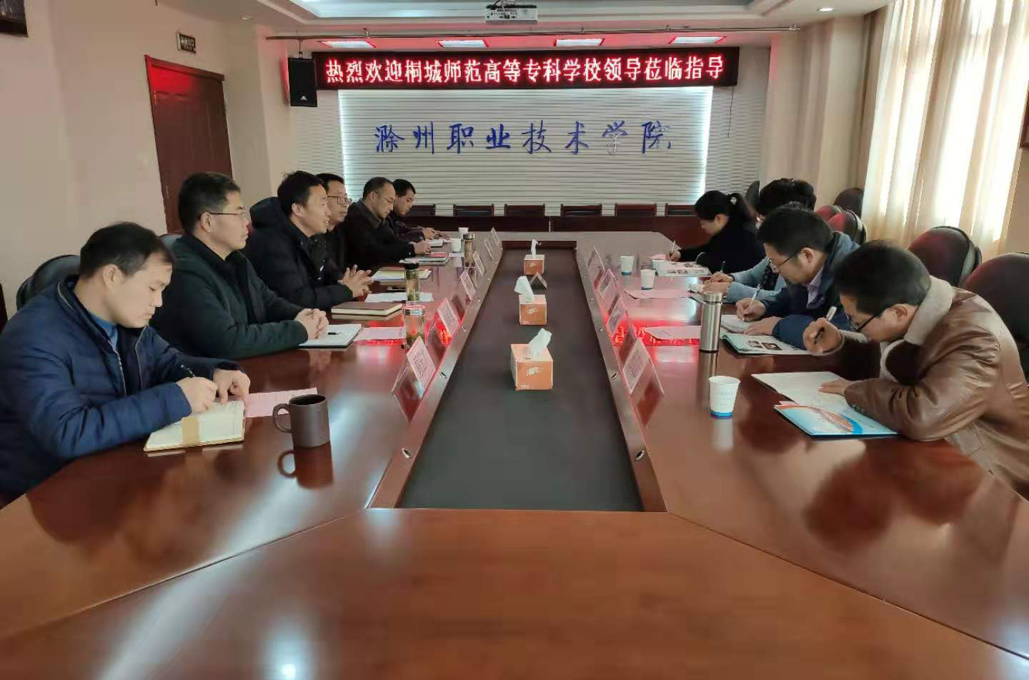12月5日,桐城师范高等专科学校副校长程玉梅带领该校学生处、招生就业处、总务处等部门相关人员一行莅临Beat365考察交流。Beat365党委副书记杨家庆,党委委员、宣传部长、学生处长李平权热情接待了考察组一行,并出席了现场座谈交流会。