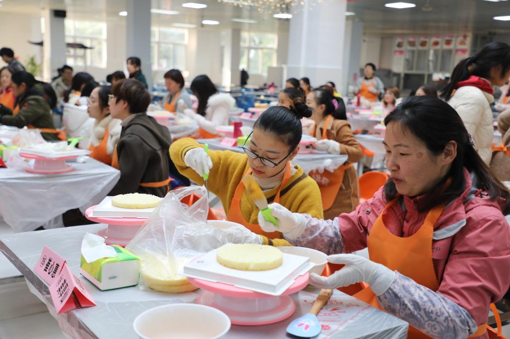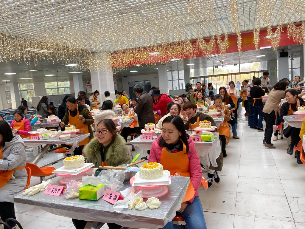 初冬凝爱,为丰富教职工的业余文化生活,提升教职工的幸福感,12月11日下午3点,校工会在食堂一楼大厅举办了“幸福生活步步gao”教职工蛋糕DIY大赛。滁州市总工会组织部部长王菊宁、滁州经济开发区工会委员、工会主任罗永富及高级甜品师刘小燕担任本次比赛评委。党委委员、校工会主席陈学军与来自全校各个分工会的50名教职工一起参加了活动。
