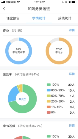 商学院的陈艳老师通过直播教学、Ismart(英语教学平台)及微信、QQ补充教学的多种形式开展教学活动,保证学生学有所获。首先,陈老师通过泛雅平台同步课堂及QQ的分享屏幕进行直播教学,讲解重难点;其次,作业在Ismart里布置,通过QQ进行签到打卡,及时弥补了超星学习通负荷过重的问题;再次, 利用QQ,微信进行答疑,通过Ismart布置作业并批阅,及时对学生作业中出现的问题进行讨论和点评。最后,陈老师进行错峰教学,及时调整教学方式。为了保证线上直播教学的进行,她在每次课前都会提早上线,测试学习工具,为避免网络在高峰时时常会出现拥堵现象;陈老师还会灵活时间安排,根据情况把课安排在晚上。陈老师说“有时是电脑,Ipad和手机齐上阵,为了教学效果也会及时调整更换直播工具,最重要的是更好地为学生服务,为教学服务。”