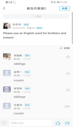 《实用英语》课程的教师团队在每周网络课程结束之后,都会在网络群中对直播中出现的问题进行探讨并提出解决方案,及时改进教学方法和更新教学资料。口语实训课程中,教师针对学生后台出现比较多的语音错误情况进行语音纠正,对个别语音错误比较严重的同学进行单独连线。第一次直播课基本达到预期的效果,但是学生反映对学习的流程和方式不是很熟悉,还有少部分学生表示网络进不去的现象。针对此情况,教师团队灵活机动,在学习高峰期时把学习通和QQ群交替使用,将直播和速课相结合。到目前为止学生已经熟练掌握了网络课程的学习方法,整体教学效果较好。