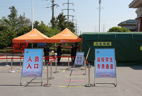 在东大门入校现场,学生相互间隔1米间距排队,经安康码扫验、测温、核验返校身份、登记、物品消毒后,进入校园。出现健康码核验异常的同学,进入复检处及留置处测量体温,并详细记录有无感染接触情况。出现体温异常情况(≥36.8℃)的同学,进入复检处及留置处再次测量体温并详细记录有无感染接触情况,对于体温仍然异常的同学,交由120救护车送达指定发热门诊。