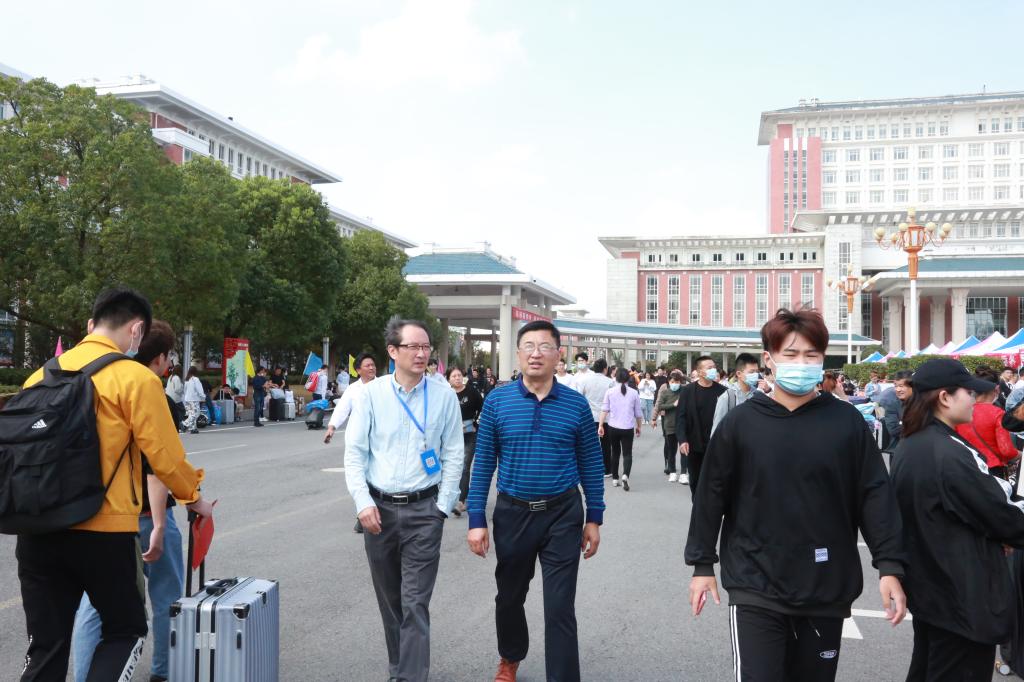 学校高度重视迎新工作,校党委书记李柱梁,校党委副书记、校长许雪峰,校党委副书记杨家庆,校党委委员、校长助理、招生就业处处长穆松,校党委委员、党委宣传部部长、学生工作处处长李平权来到报到现场检查指导迎新工作,看望慰问师生。他们与各个学院的迎新人员亲切交流,详细询问各专业的新生报到情况,对远道而来的新生和家长表示了热烈的欢迎。校领导叮嘱相关部门要扎实做好新生报到期间的疫情防控工作,筑牢安全防护屏障。