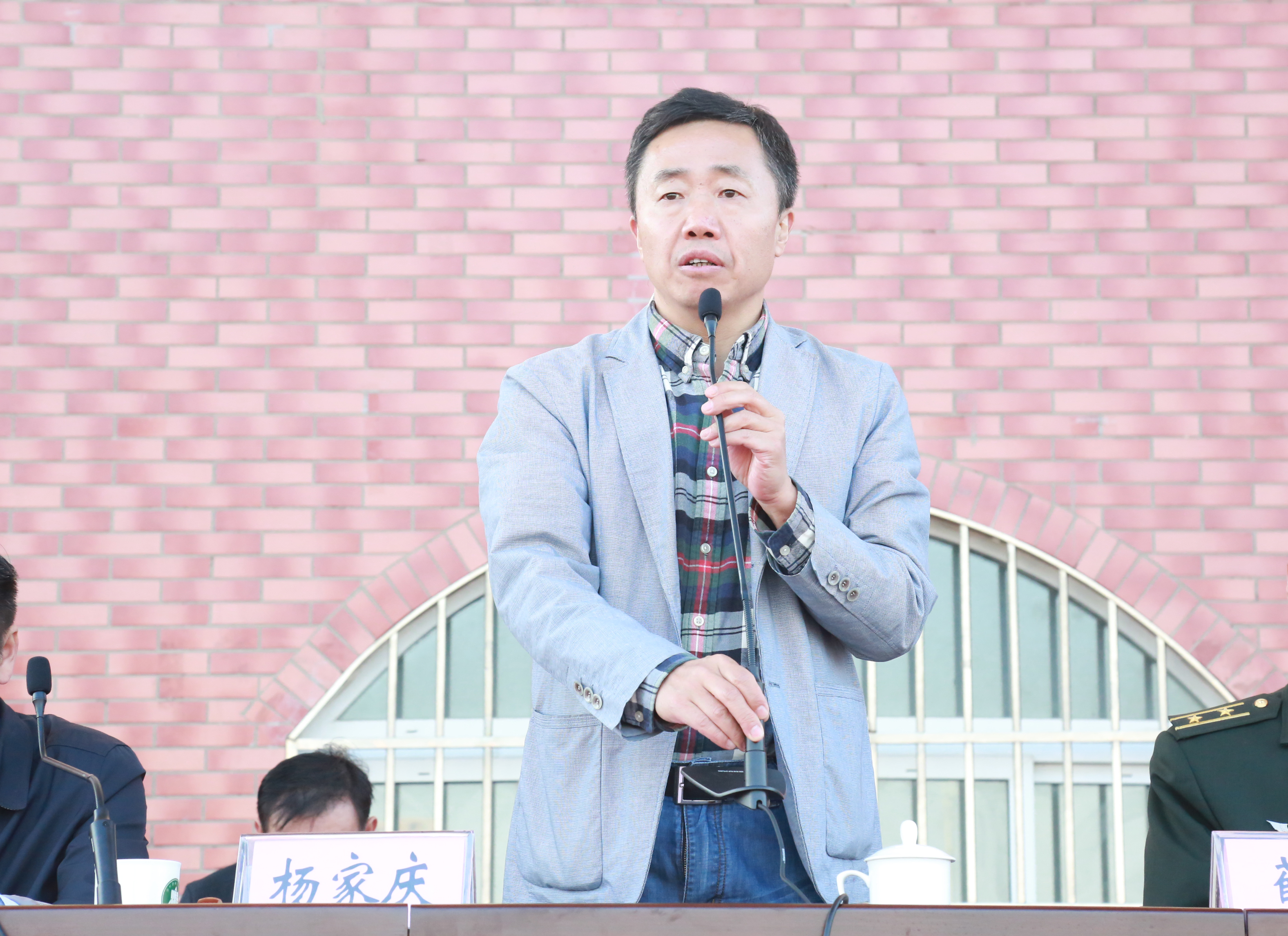 校党委副书记杨家庆代表学校向承训部队赠送锦旗。