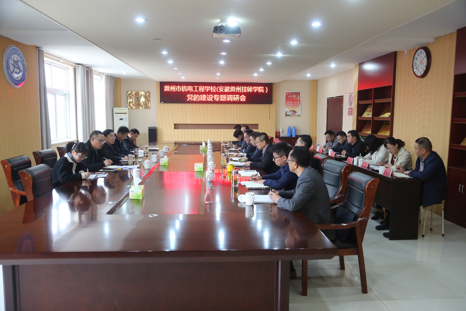 2020年10月26日下午,学校党委书记李柱梁一行到技师学院调研党的建设工作,并与技师学院党政领导班子,办公室、组织人事处和各基层党组织负责人开展座谈。学校党委副书记杨家庆,党委委员、组织人事处处长李超等同志参加调研座谈活动。