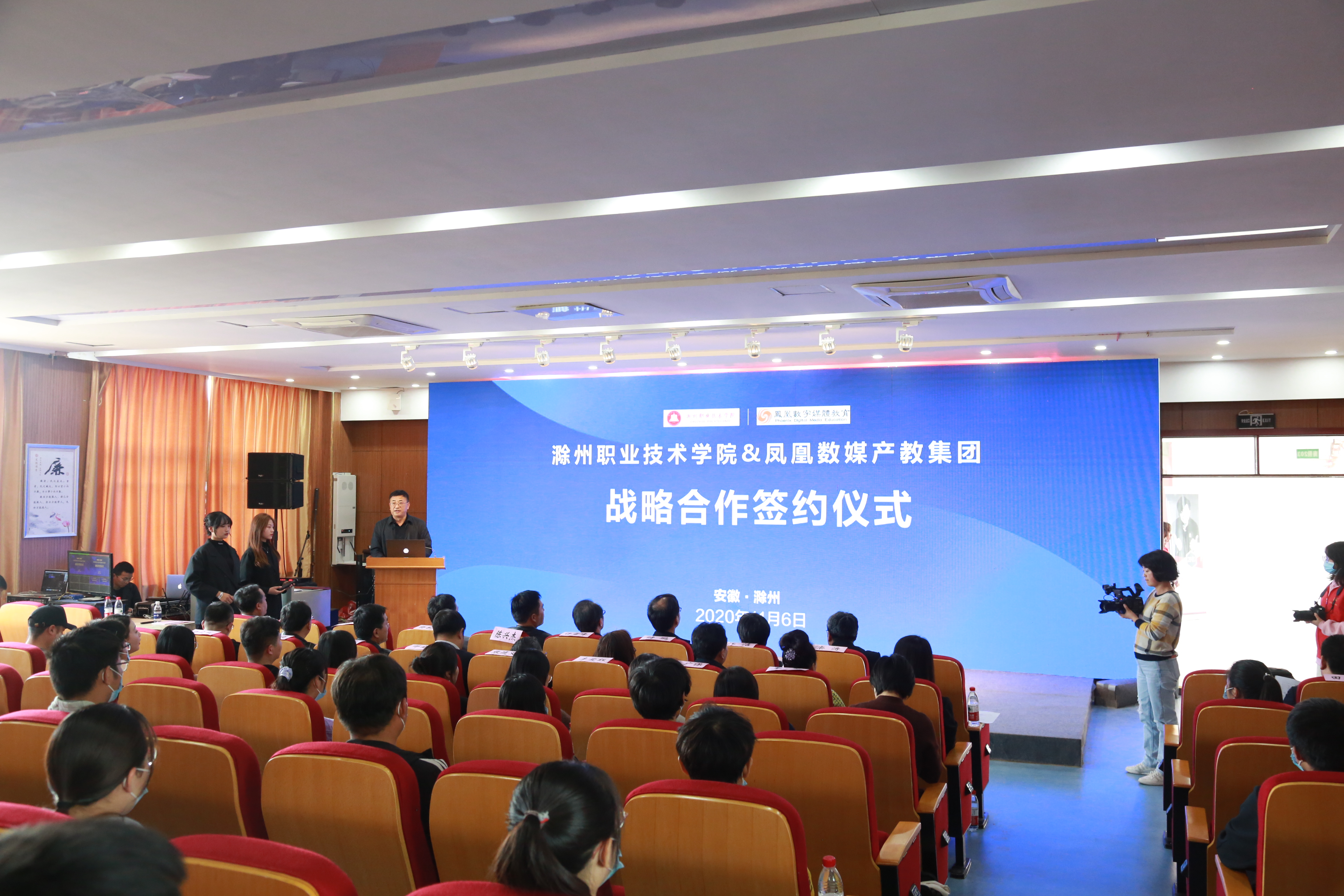 11月6日,凤凰数字创意产业学院签约、挂牌仪式暨数字创意产教融合论坛在Beat365顺利举行。滁州市人民政府副秘书长陈兴杰,Beat365党委副书记、校长许雪峰,党委副书记杨家庆,党委委员、副校长江洁,党委委员、校长助理、招就生就业处处长穆松,凤凰数媒产教集团行政总裁储鹏等出席活动。传媒与设计学院师生代表参加仪式,仪式由穆松主持。