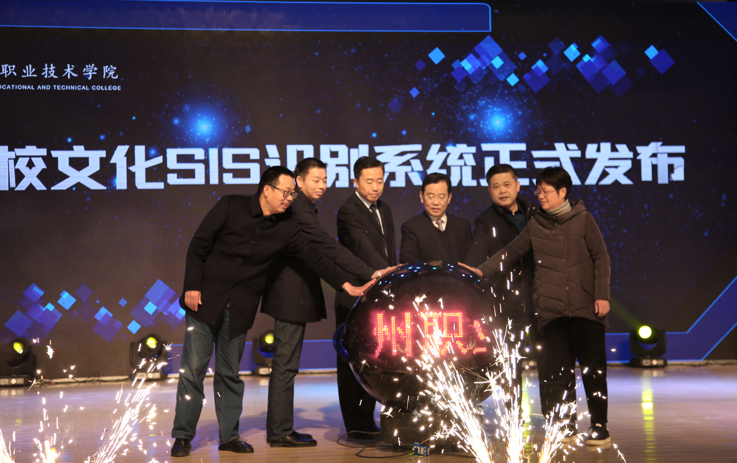 随着发布会的正式开始,与会校领导共同走上舞台,按下了校园文化SIS识别系统发布会启动球,与在座广大师生一起观看了《和乐滁职 人以化成——学校文化SIS识别系统发布片》,见证了学校文化SIS识别系统的正式发布。