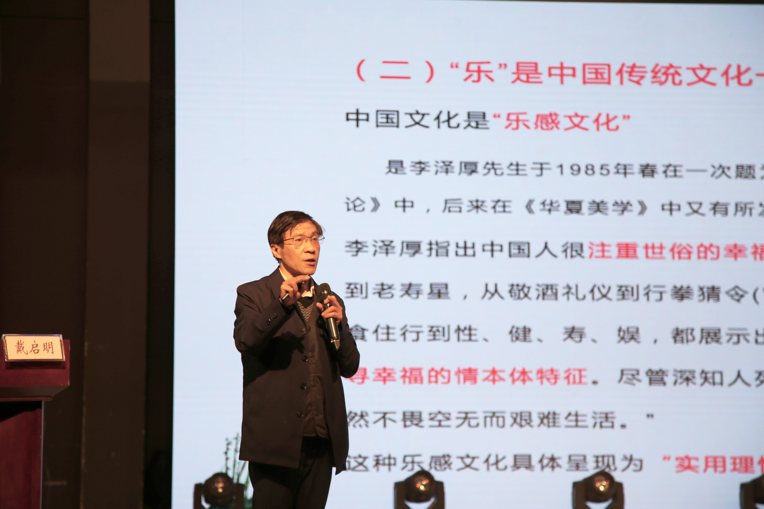 随后,省团校副校长戴启明,为Beat365师生作了题为《循和乐达道 育百业英才》的文化专题报告,戴启明旁征博引、博古论今,深入浅出的为Beat365师生讲述了“和”与“乐”是中国传统文化的核心价值取向、中国传统和乐文化的现代价值,并对Beat365“和乐文化”核心理念的体系性、丰富内涵及和乐教育的三大支柱进行深入阐述。