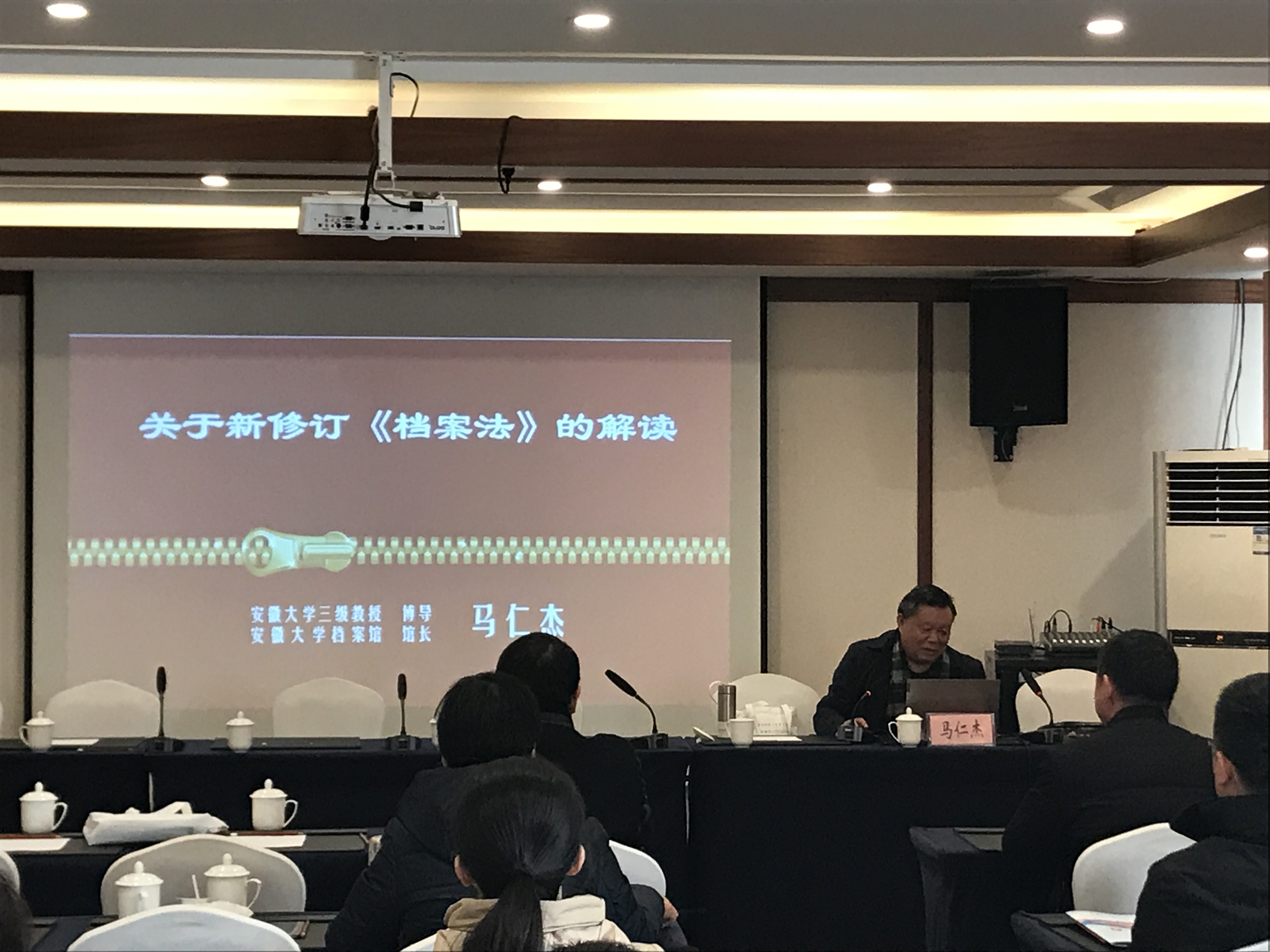 安徽大学博士生导师、档案馆馆长兼校史办主任马仁杰作了题为“关于新修订《档案法》的解读”的主题报告,从修订背景和过程、修订的主要内容、贯彻实施等三个方面,对新修订《档案法》进行了深入细致的解读。