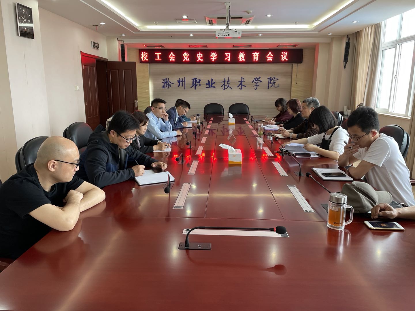 5月13日上午,校工会在综合楼904会议室召开党史学习教育会议,校工会全体人员、各分工会主席参加会议。会议由党委委员、工会主席陈学军主持。