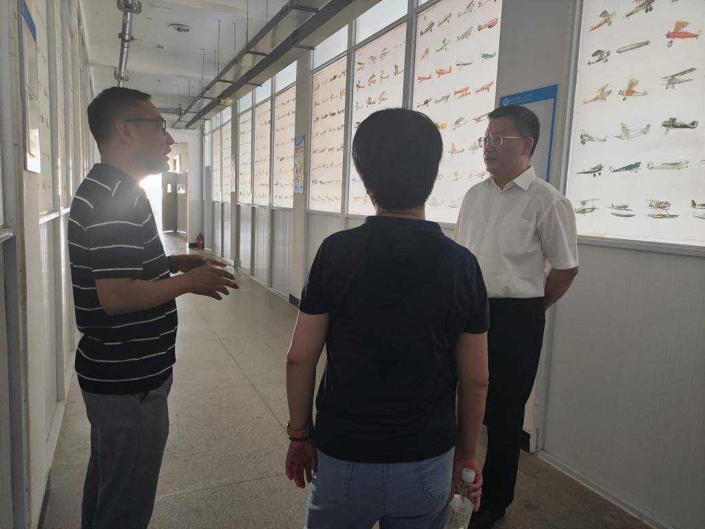 曹付忠一行先后对无人机模拟飞行训练机房、无人机装配实训室、无人机训练配电房等进行了实地考察,刘杰就智能制造学院党建、教学管理、学生管理、招生、师资队伍建设、实验实训室建设等方面作了简要汇报。
