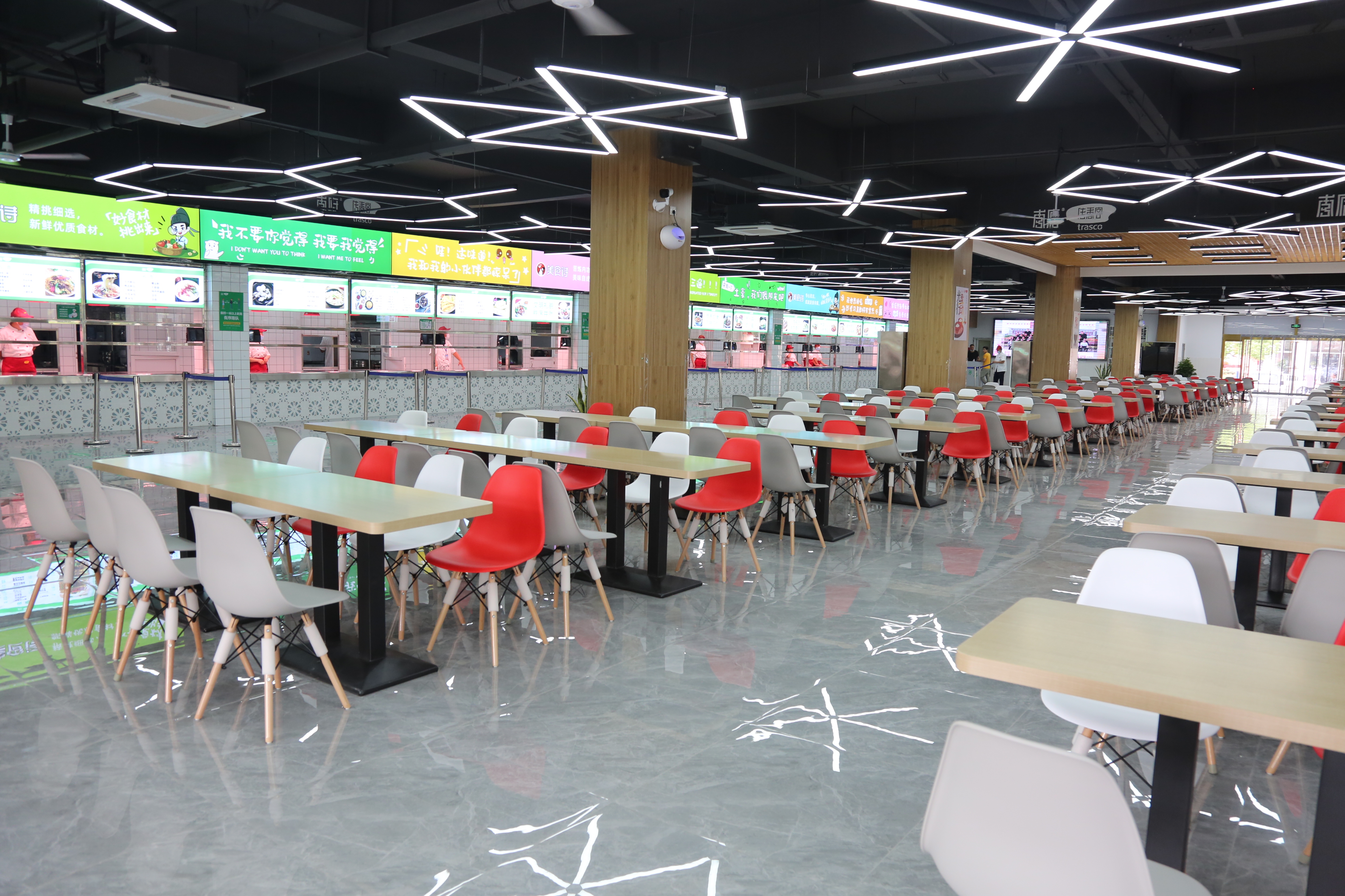 暑假期间,学校各部门加快推进校园建设,改善学校食堂与学生公寓环境,以实际行动扎实开展“我为群众办实事”实践活动,为新生的到来提供服务保障。