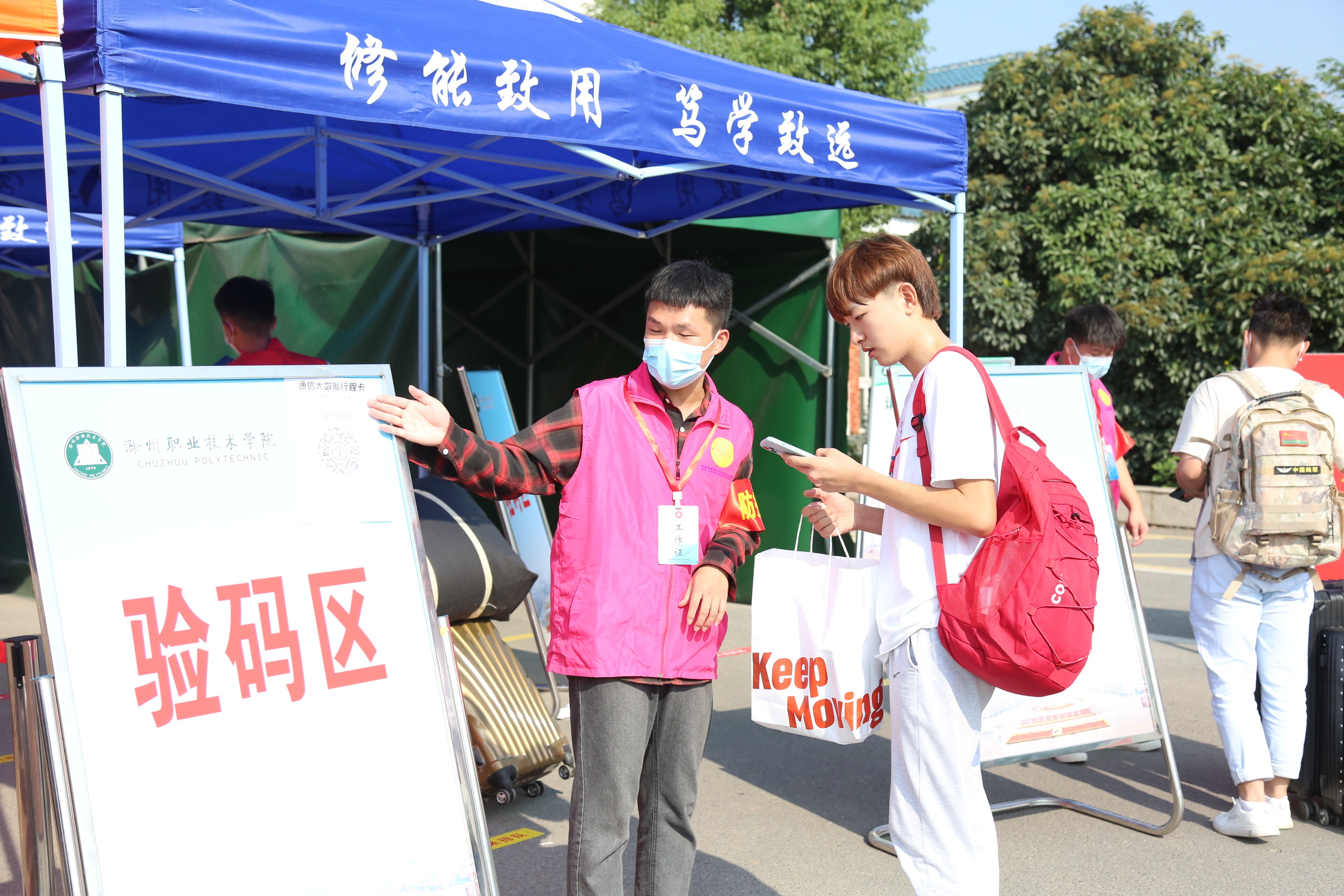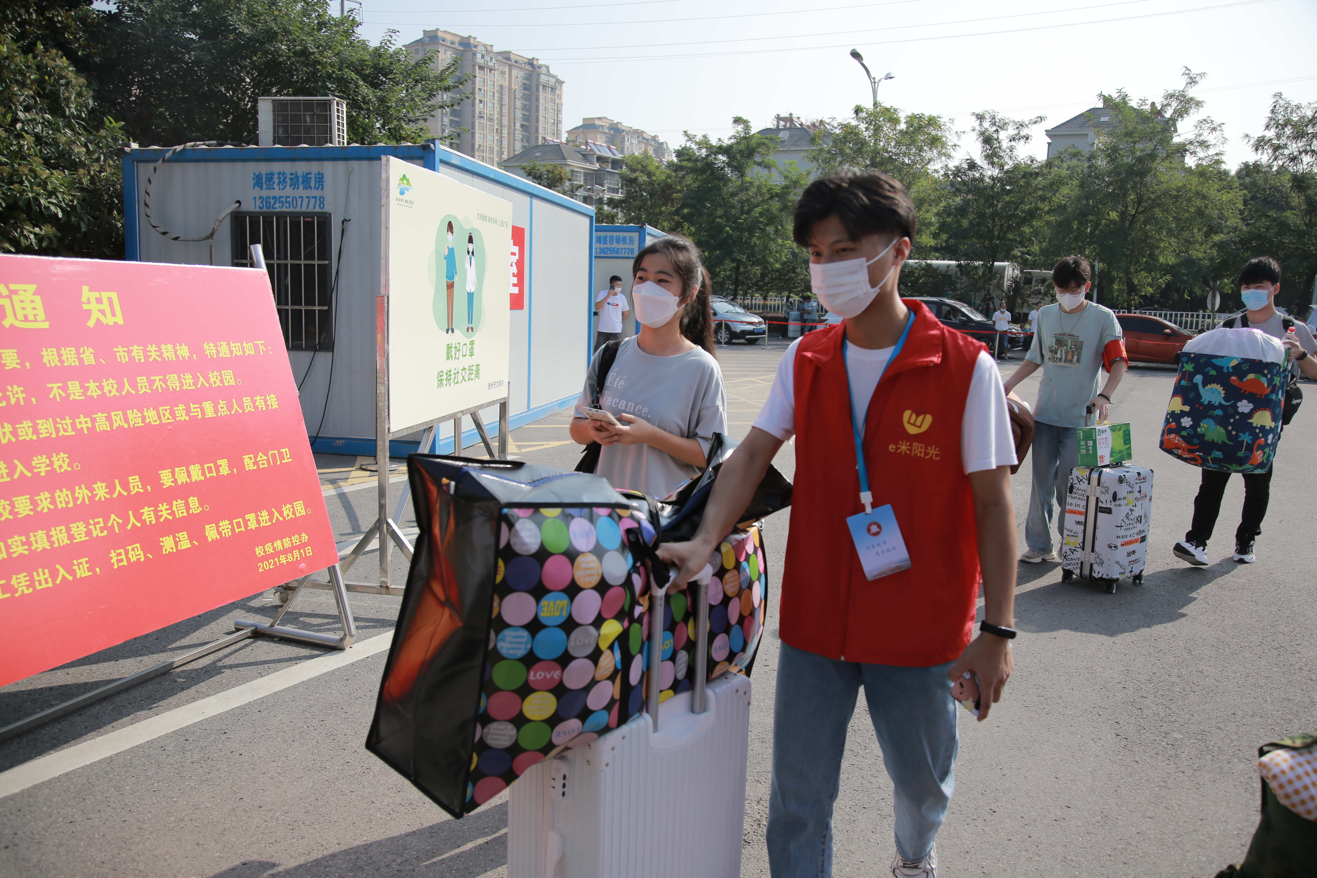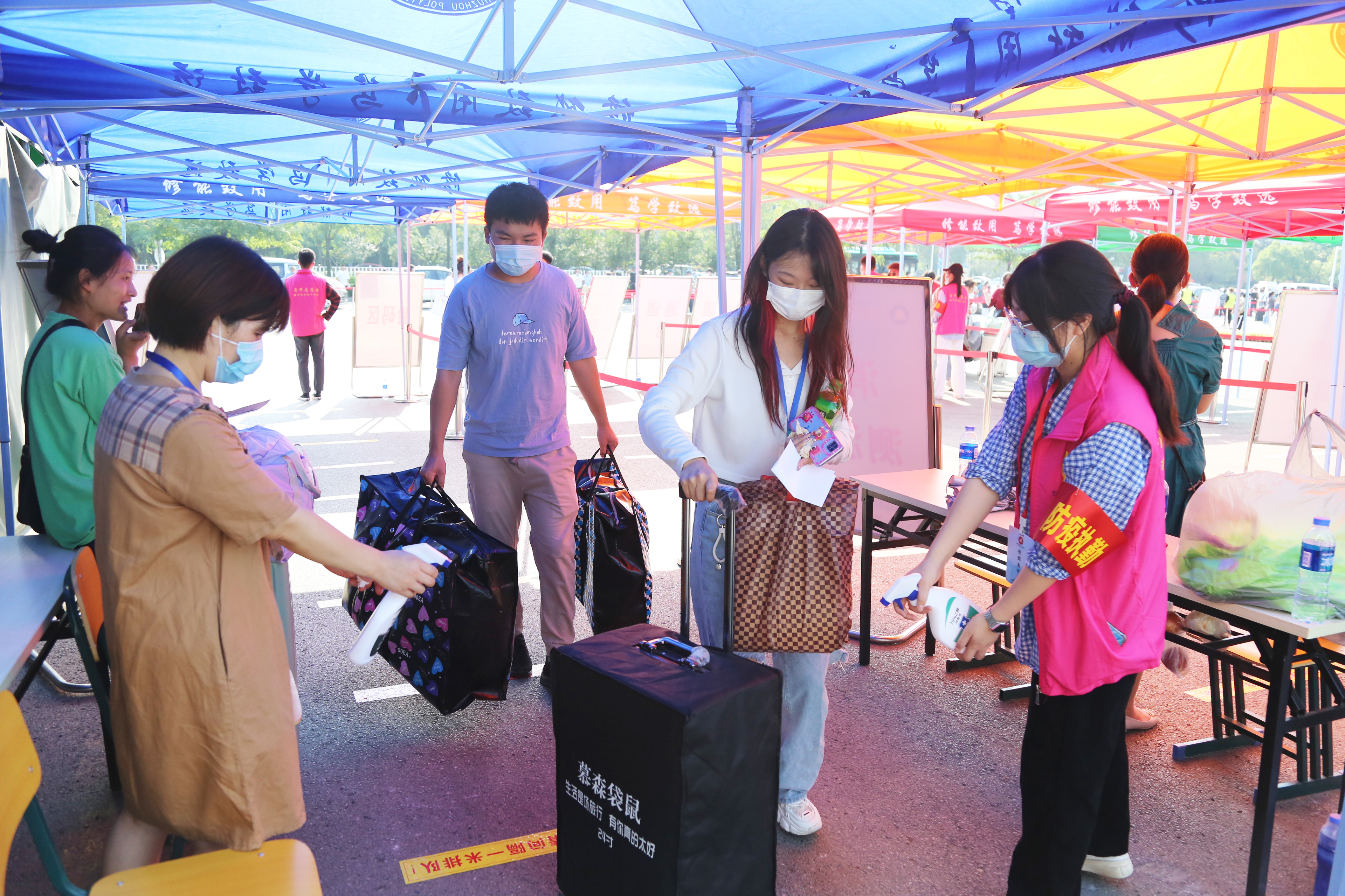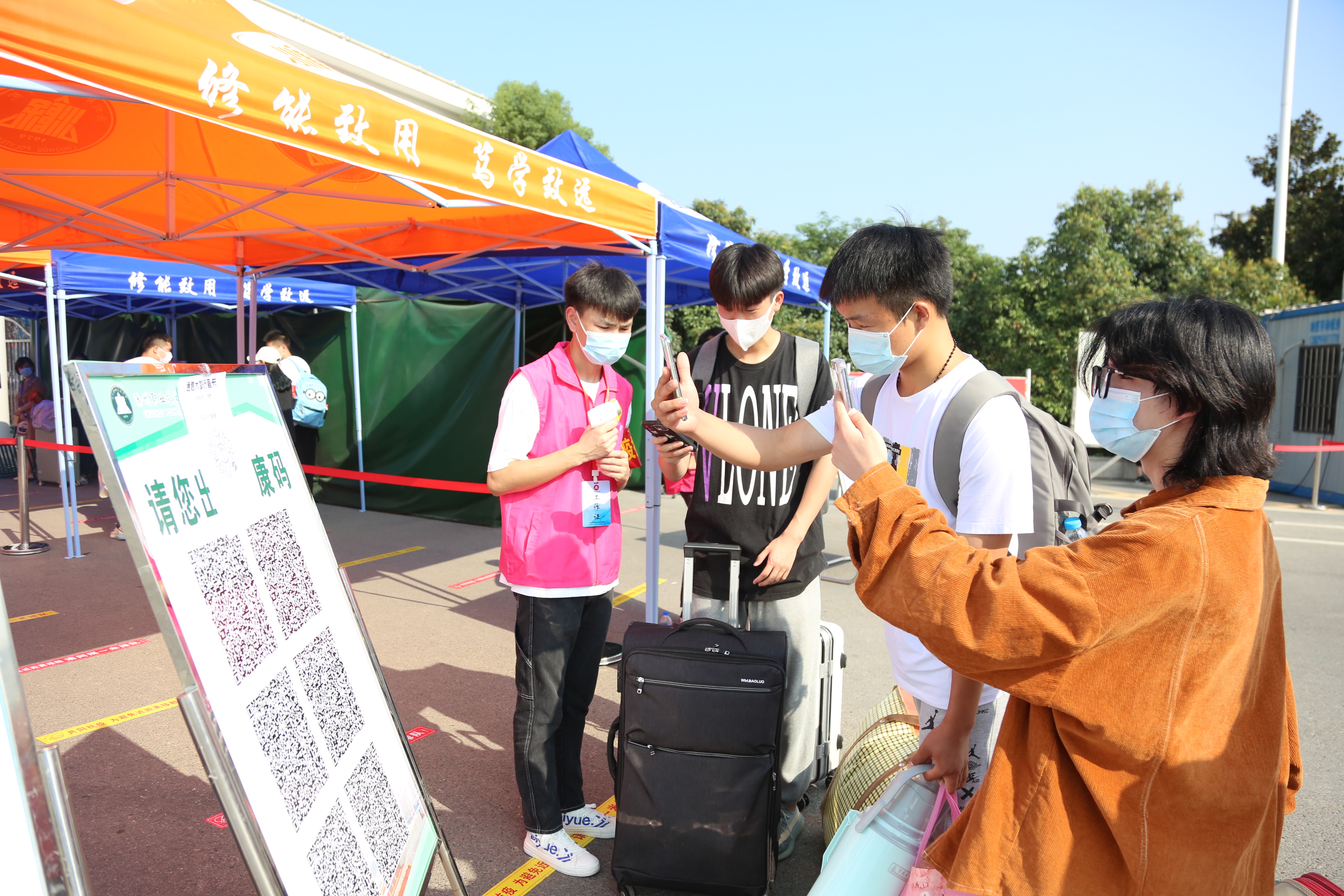 为严格执行疫情防控要求,减少人员聚集,新生报到当日持身份证、录取通知书在校门处按要求扫流程码,提供48小时内核酸检测阴性证明,进行测温消杀、核验身份后进入校园。学校还在指定地点设置了值班点、留观区、扫码区、验码区、消杀区等,确保迎新工作顺利开展。