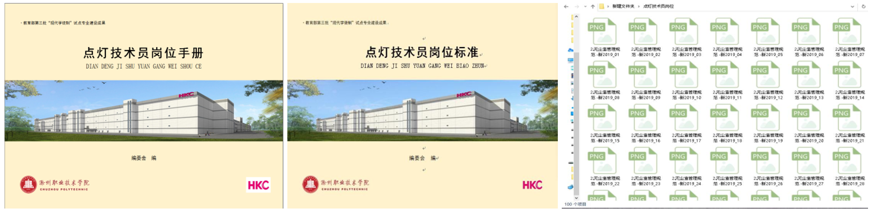 建设期内,校企联合制定了“双元培养、工学交替、突出技能、岗位成才”的人才培养制度和标准。学校的学徒制培养工作已持续了21年,又通过试点工作两年的规范和提升建设,更进一步完善了试点专业的人才培养标准、培养方案、课程标准等教学文件。电气工程学院除了建设完成机电一体化专业五门核心课程教学资源,还和合作企业博西华家用电器有限公司建立了5门岗位课程的岗位标准和岗位手册,和惠科光电科技有限公司建立了4门岗位课程的岗位标准和岗位手册和培训视频。为合作企业提供了标准化的学徒及员工岗前培训的文字及视频资源。