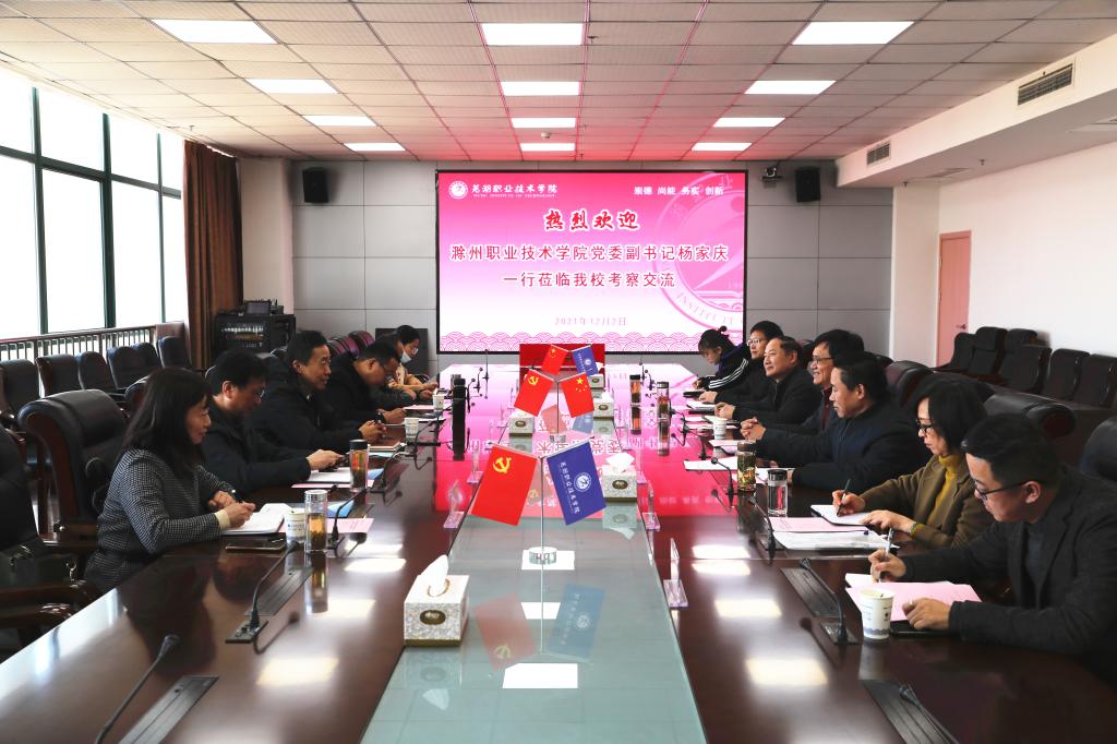 12月2日,由校党委副书记杨家庆带队,党委委员、宣传统战部部长、学生工作处处长李平权,学校马克思主义学院、学生工作处、宣传统战部等相关院部和部门同志一行先后赴芜湖职业技术学院、巢湖学院,考察调研两校马克思主义学院建设、“三全育人”综合改革试点工作、学生事务大厅建设和易班发展等工作。