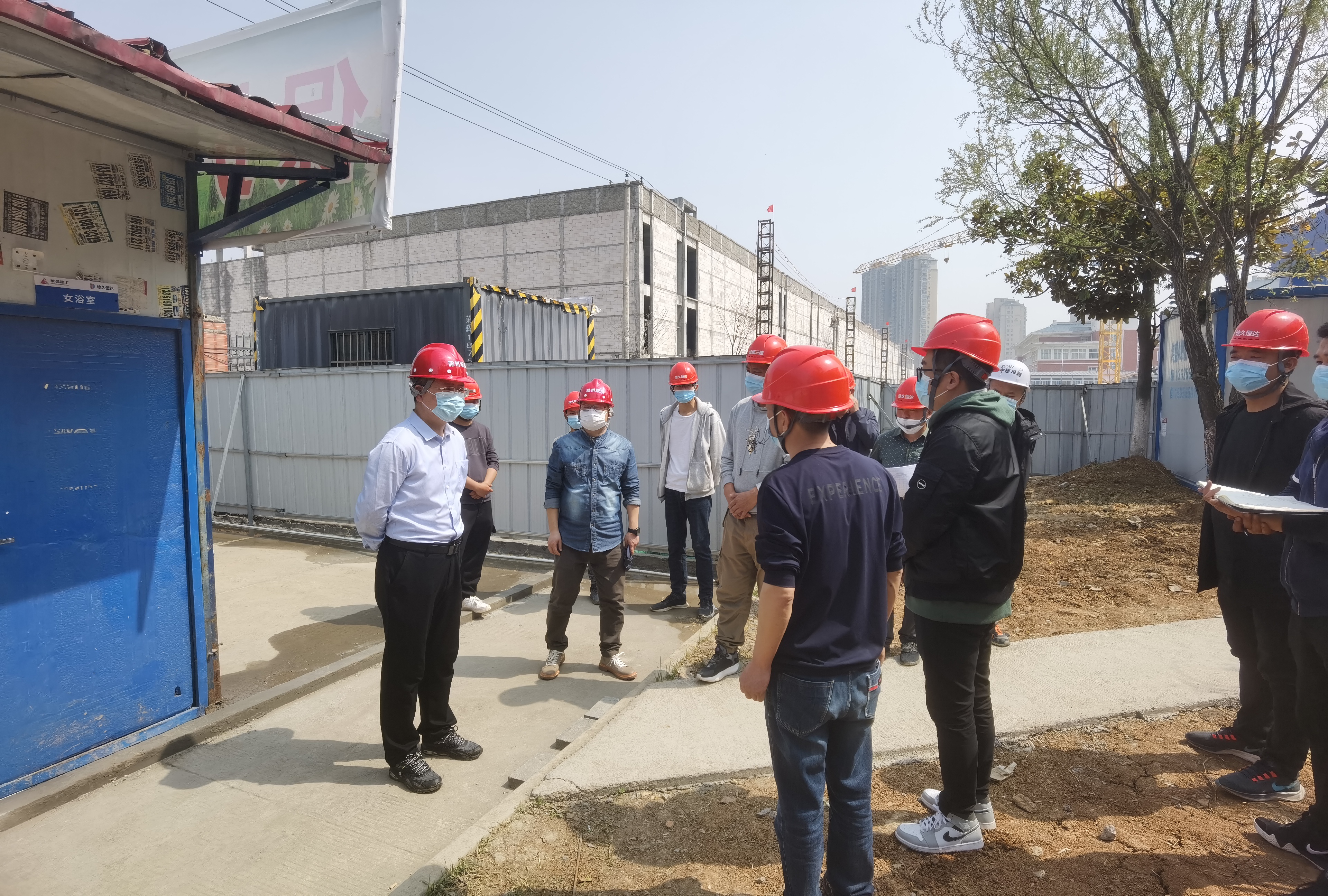 为切实加强校内工地安全生产和疫情防控工作,落实落细国家、省市及学校关于疫情防控工作的各项部署要求,3月16日上午,校党委书记曹付忠深入校内建设工地,对在建项目安全生产、疫情防控等方面工作进行实地检查指导。校党委委员、总务处处长胡凼,校疫情防控工作专班相关人员陪同。