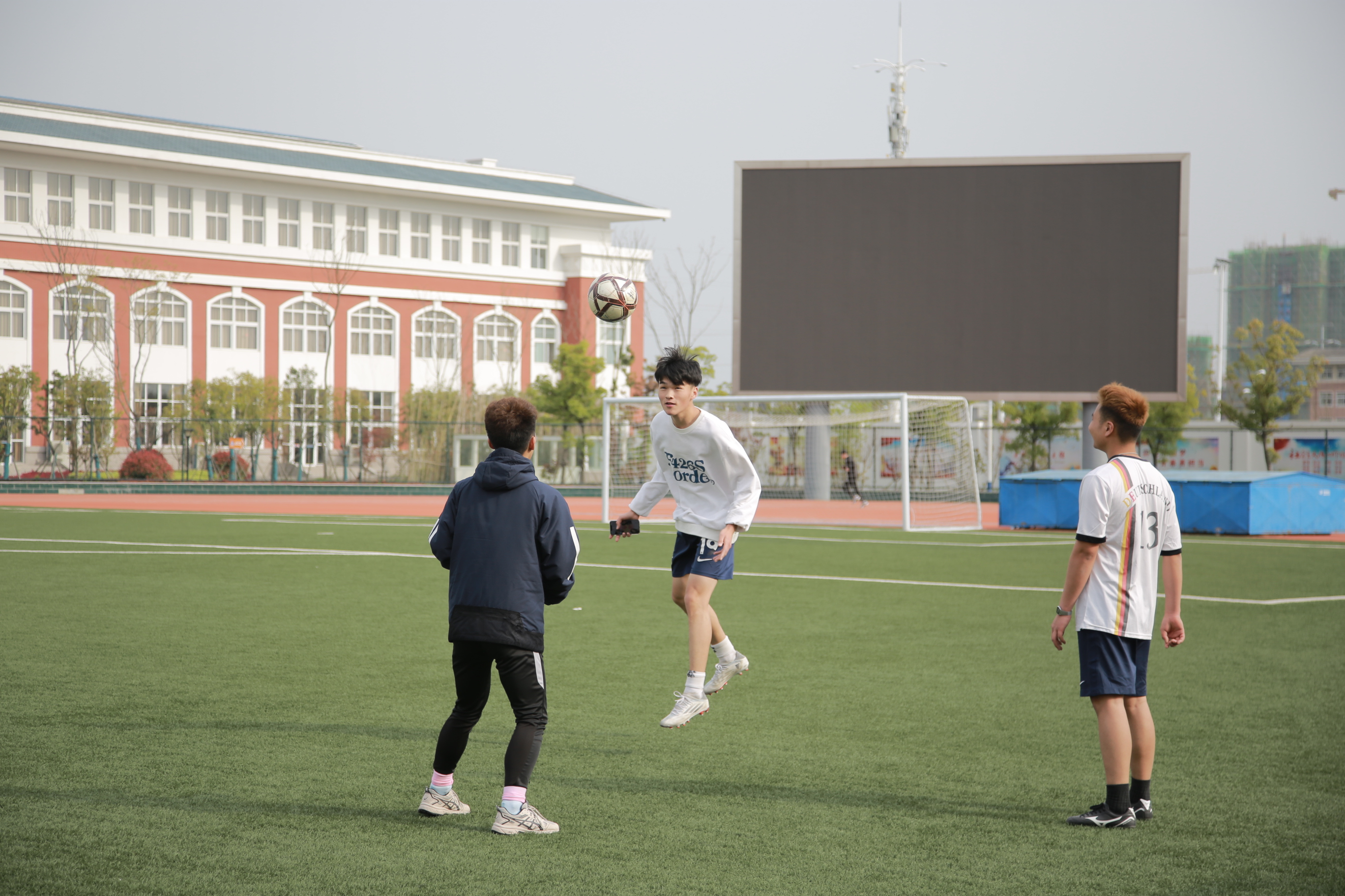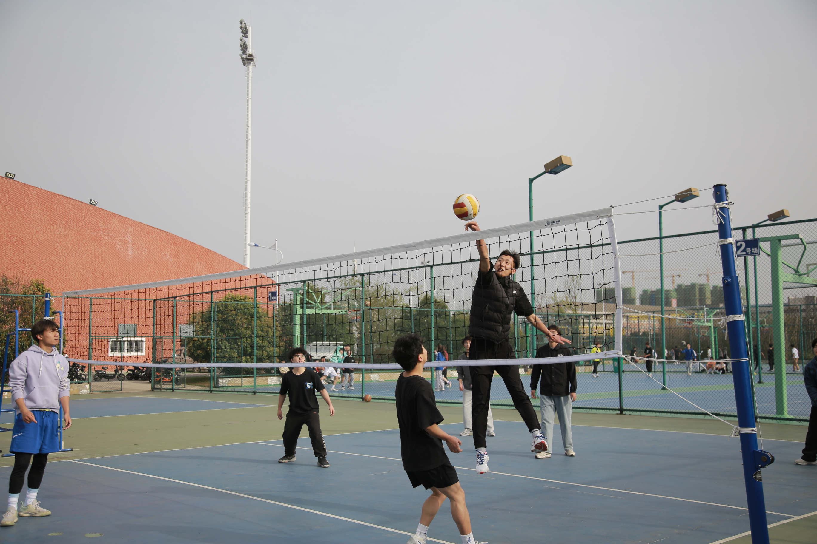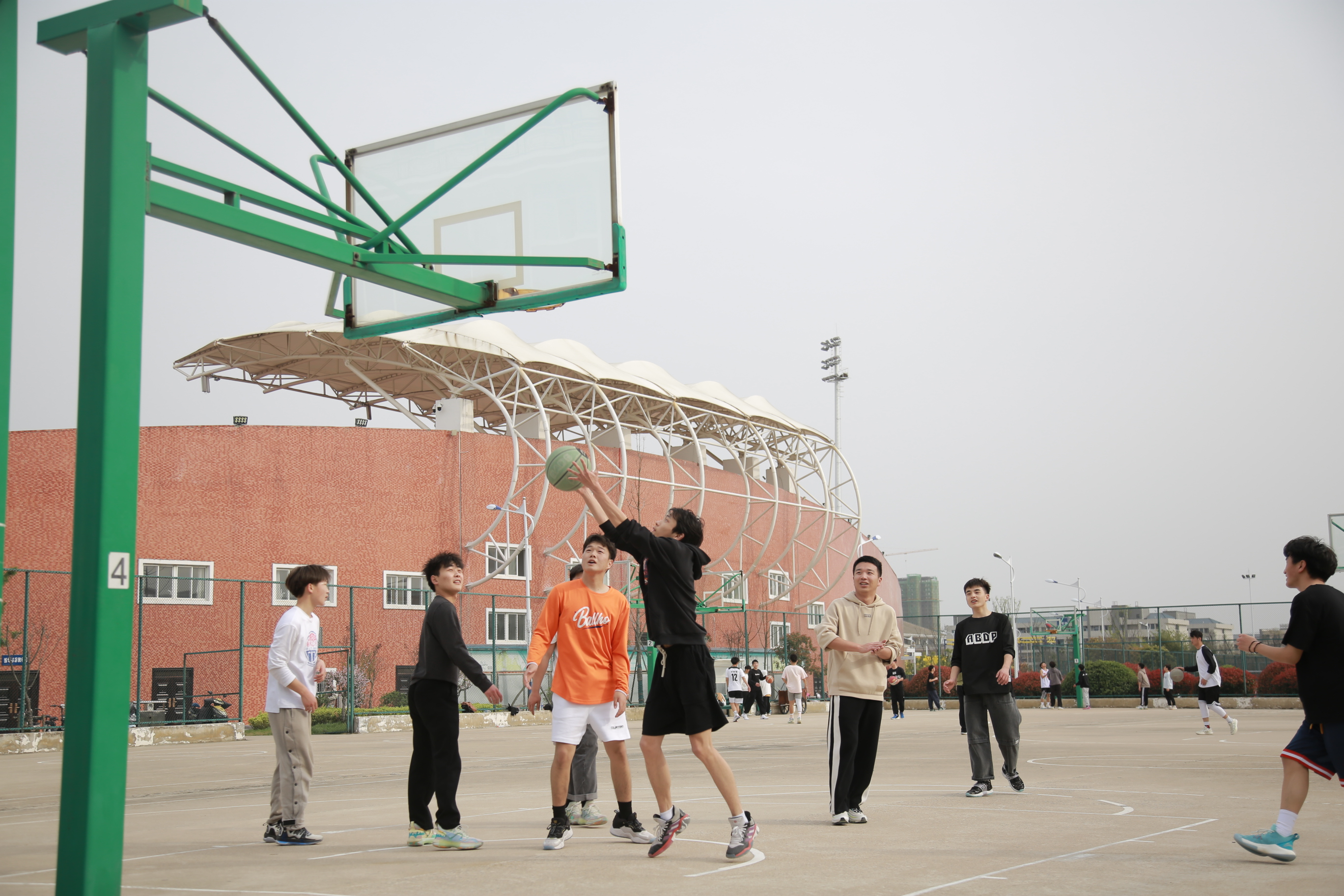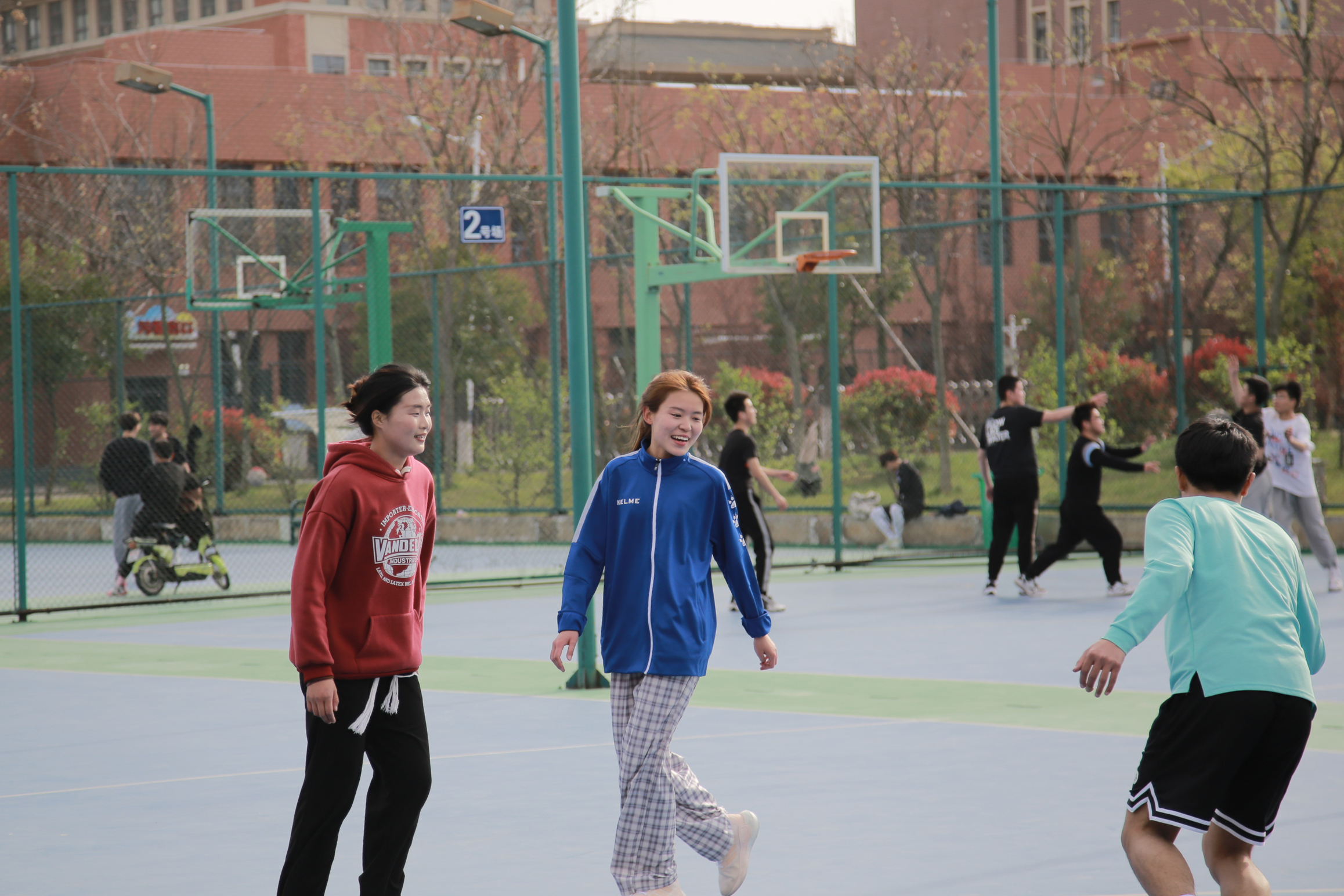 在操场、在篮球场,跃动的身影画出优美的弧线,同学们把积攒的体力和活力都尽情释放,一场比赛之后,抬头看云卷云舒,身上的疲惫褪去,好不惬意。
